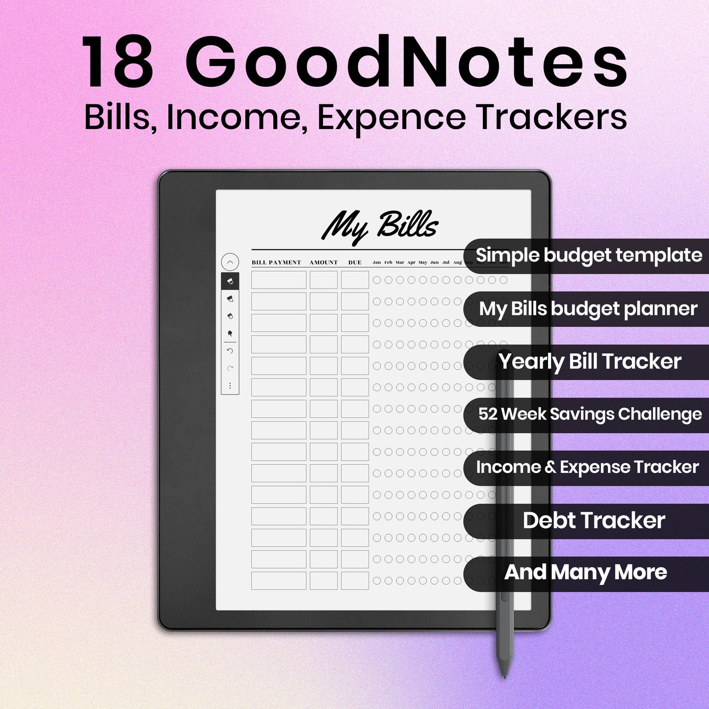 Take the first step towards financial freedom and order your 18 GoodNotes Bills Income Expense Trackers Template today!