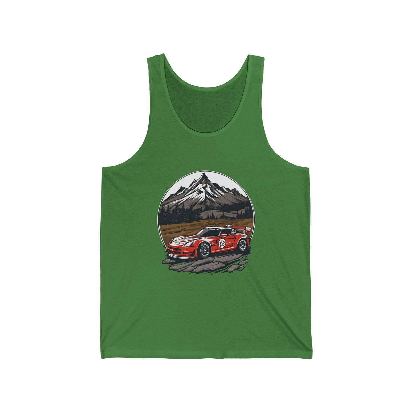 Adventure Racing Unisex Jersey Tank - Mountain & Car Design