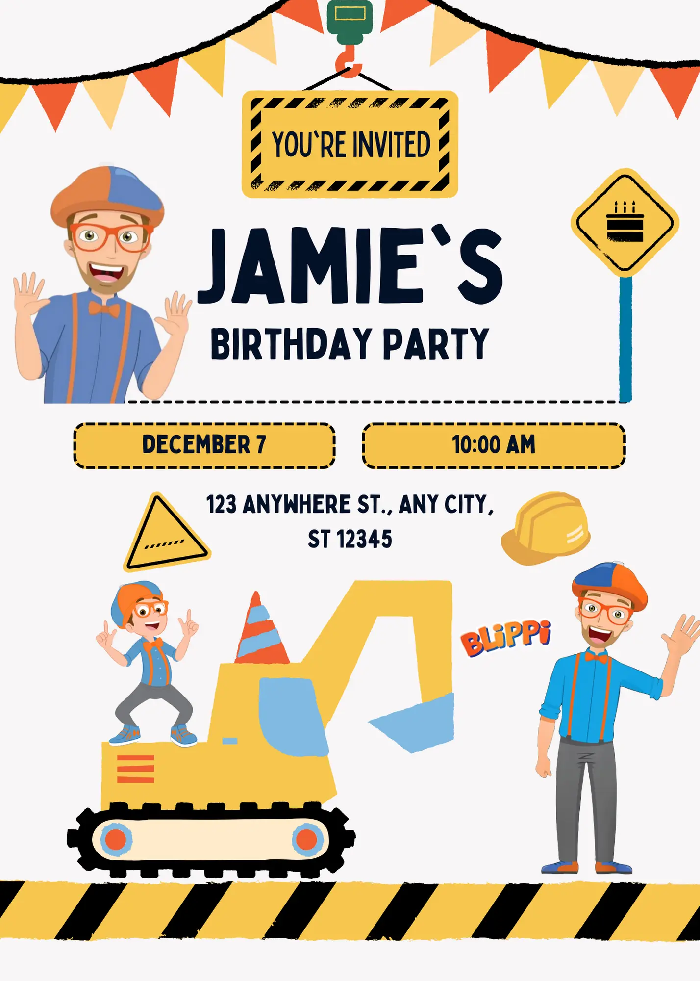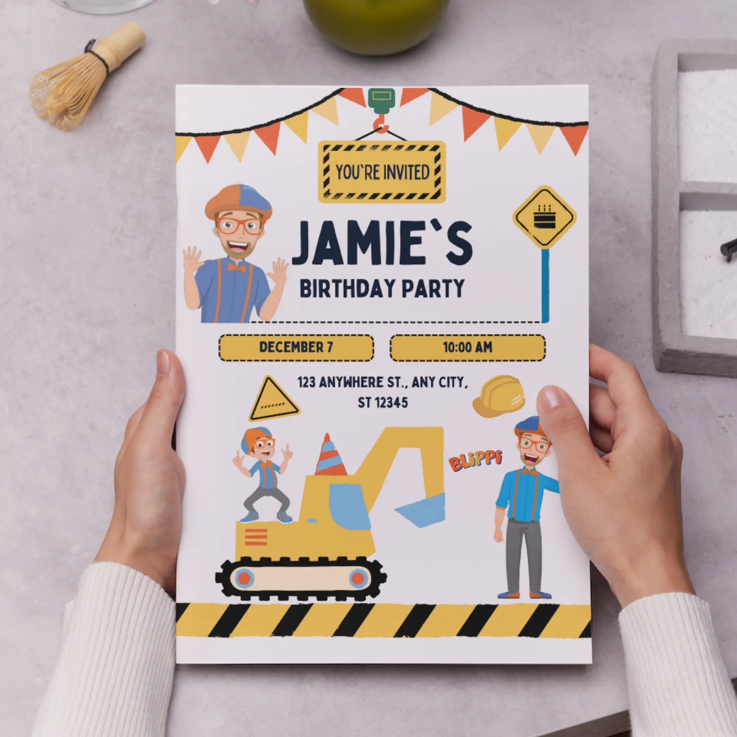 Celebrate the Birthday and invite the friends and family with Blippi Birthday Invitation. Make a lasting impression and create a memorable experience for your guests with this unique and stunning invitation.