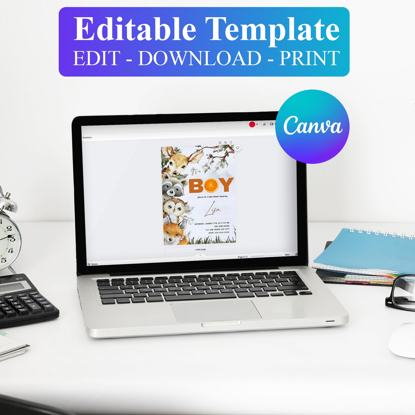 2️⃣ Edit your Boy Baby Shower birthday invitation in Canva with just a few clicks.