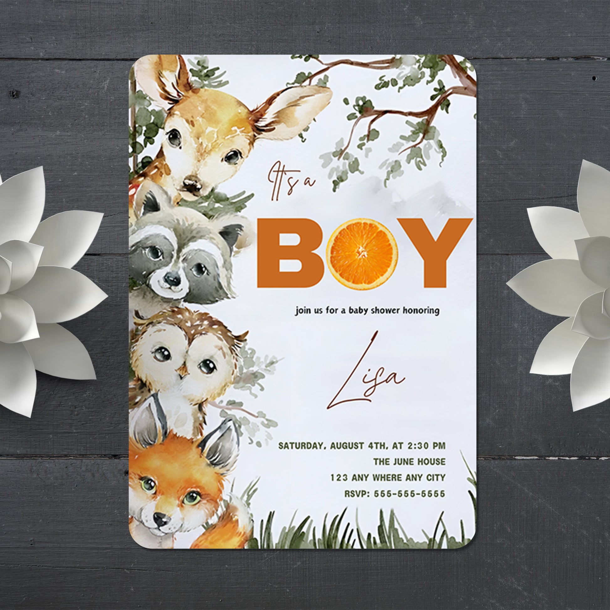 Celebrate the arrival of your little prince with this Boy Baby Shower birthday invitation! Whether you're planning a cozy gathering or a grand Boy Baby Shower birthday party, this beautifully designed template will set the perfect tone for your celebration. Designed with charming details and soft hues, this Boy Baby Shower invitation is fully customizable to match your unique party theme.