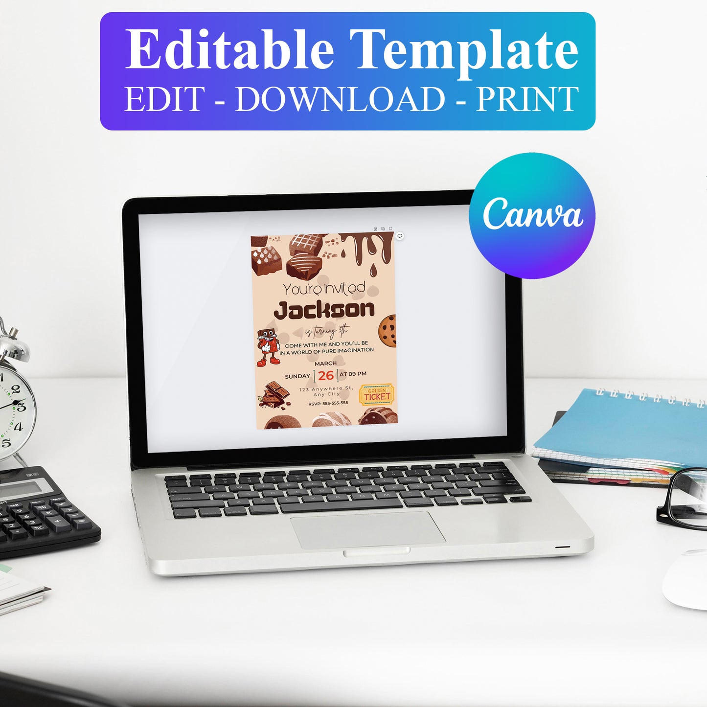 Welcome to CreativeRino, your go-to source for unique and customizable party invitations! Our Editable Digital Printable Chocolate Factory Birthday Invitation Canva Template is the perfect way to add a personal touch to your Birthday Party Celebrations.