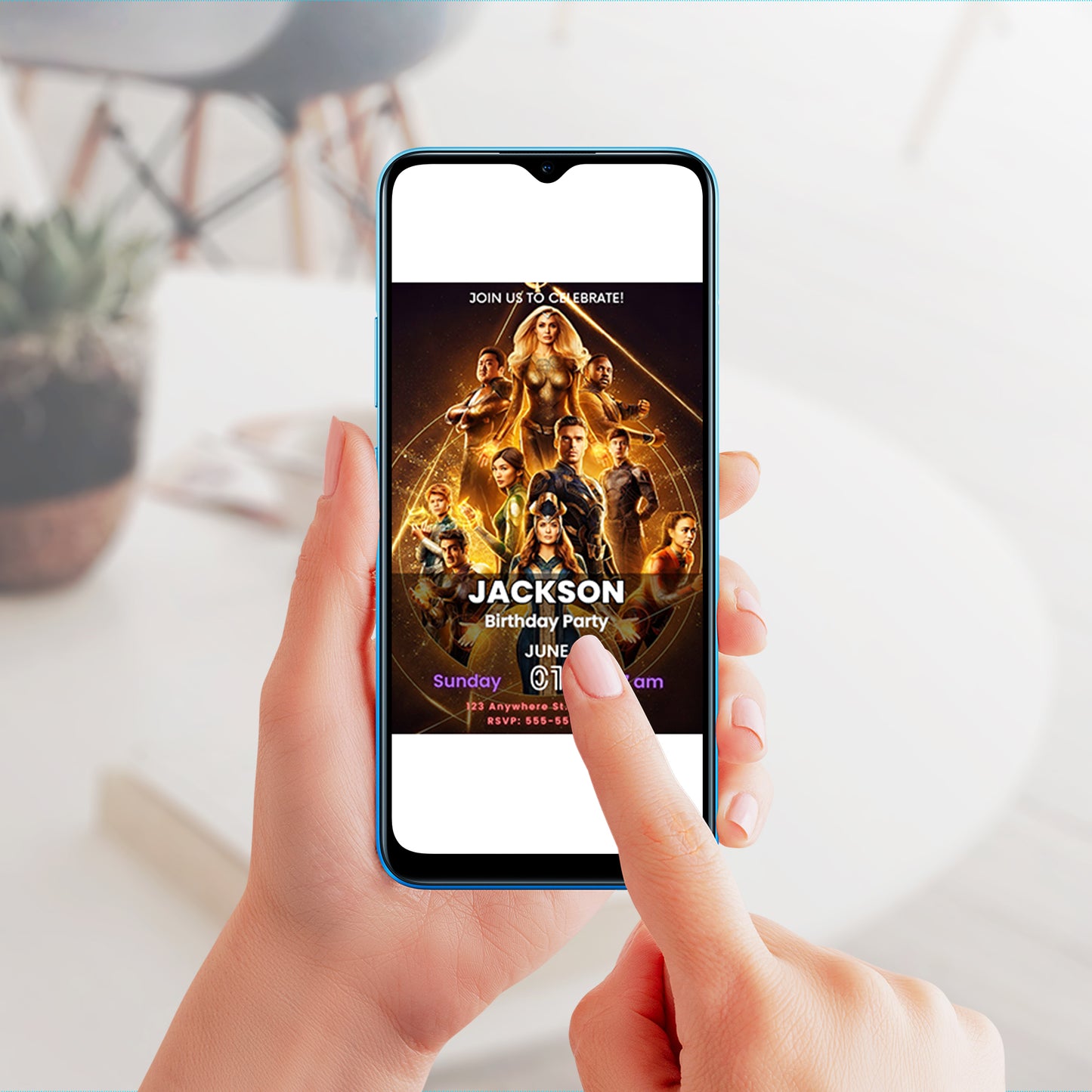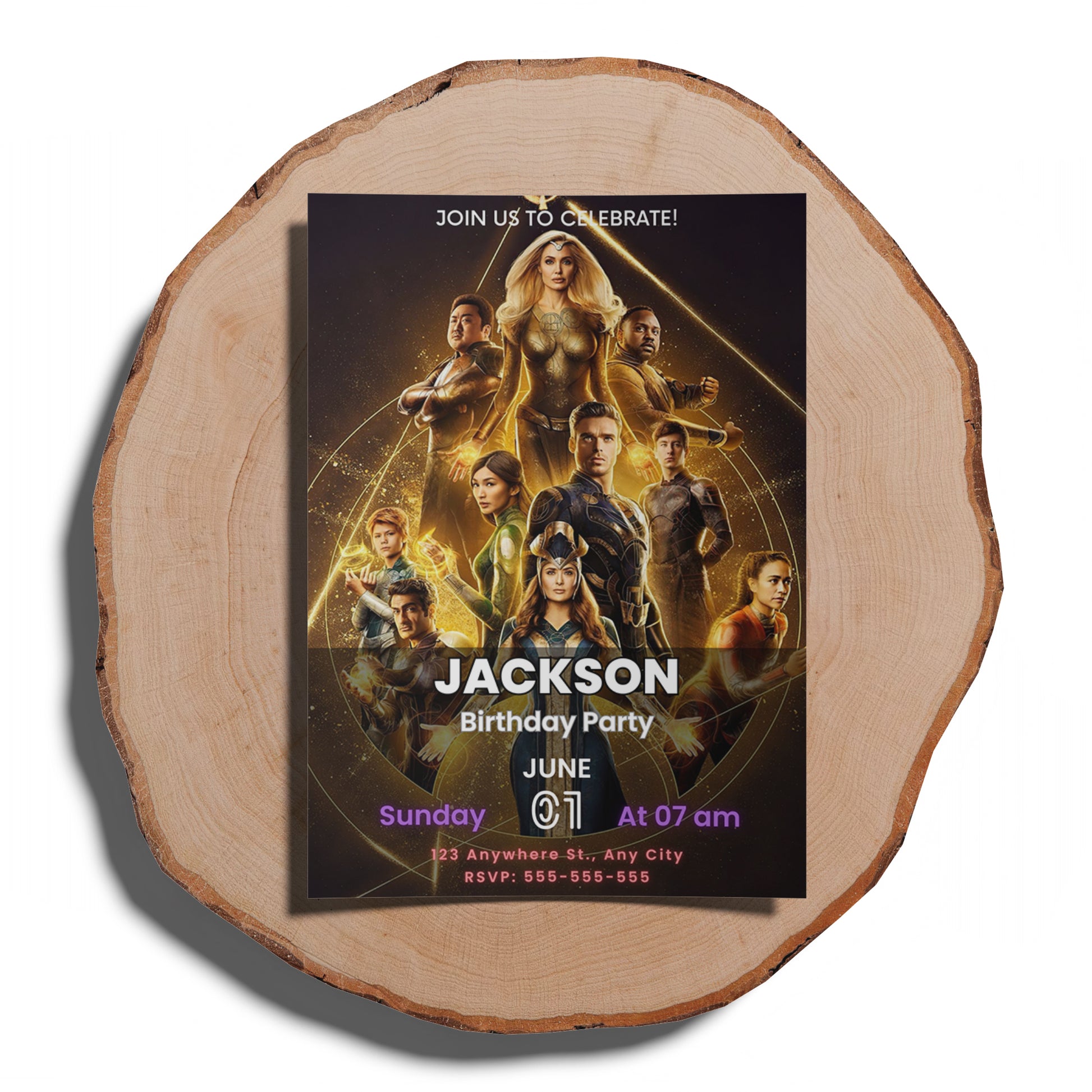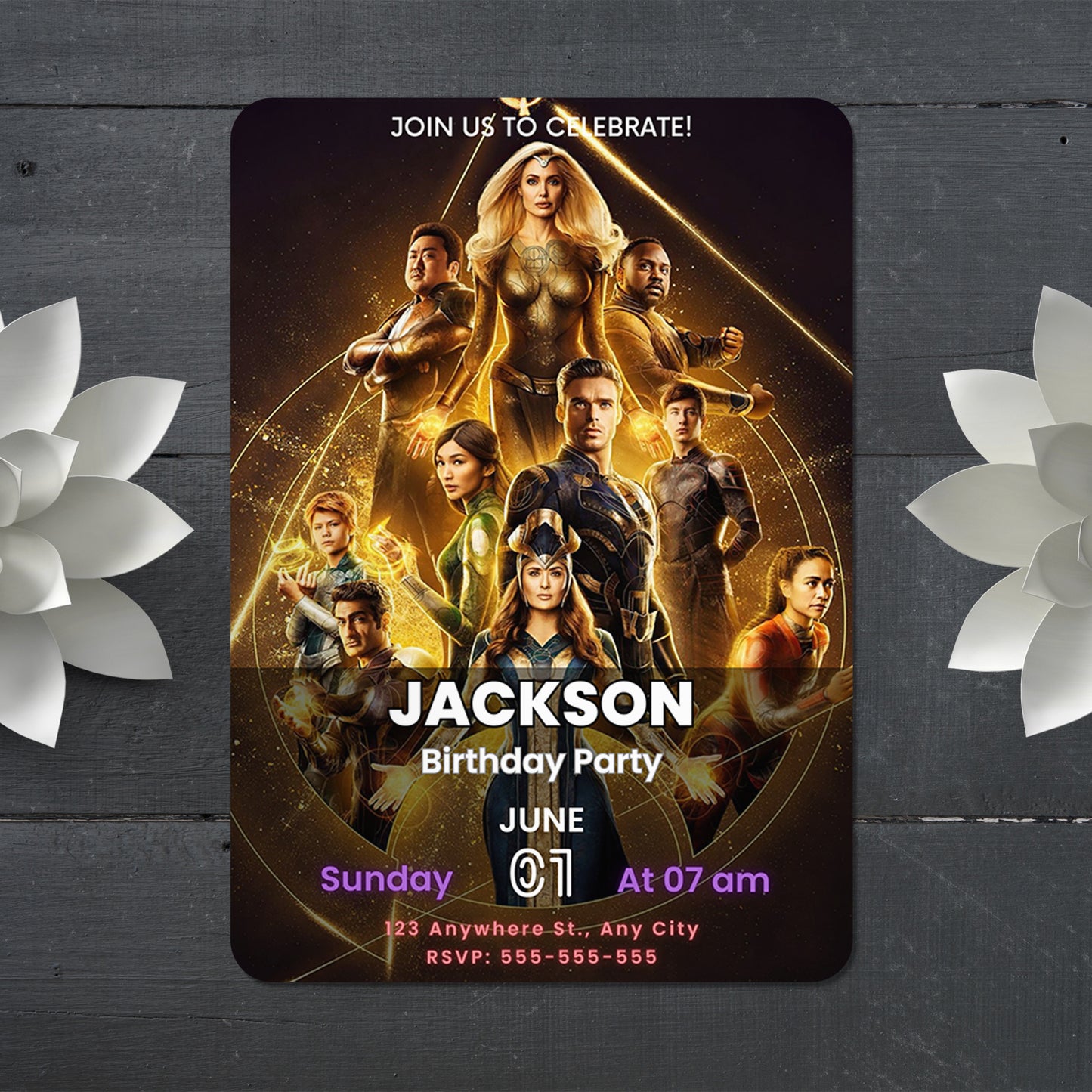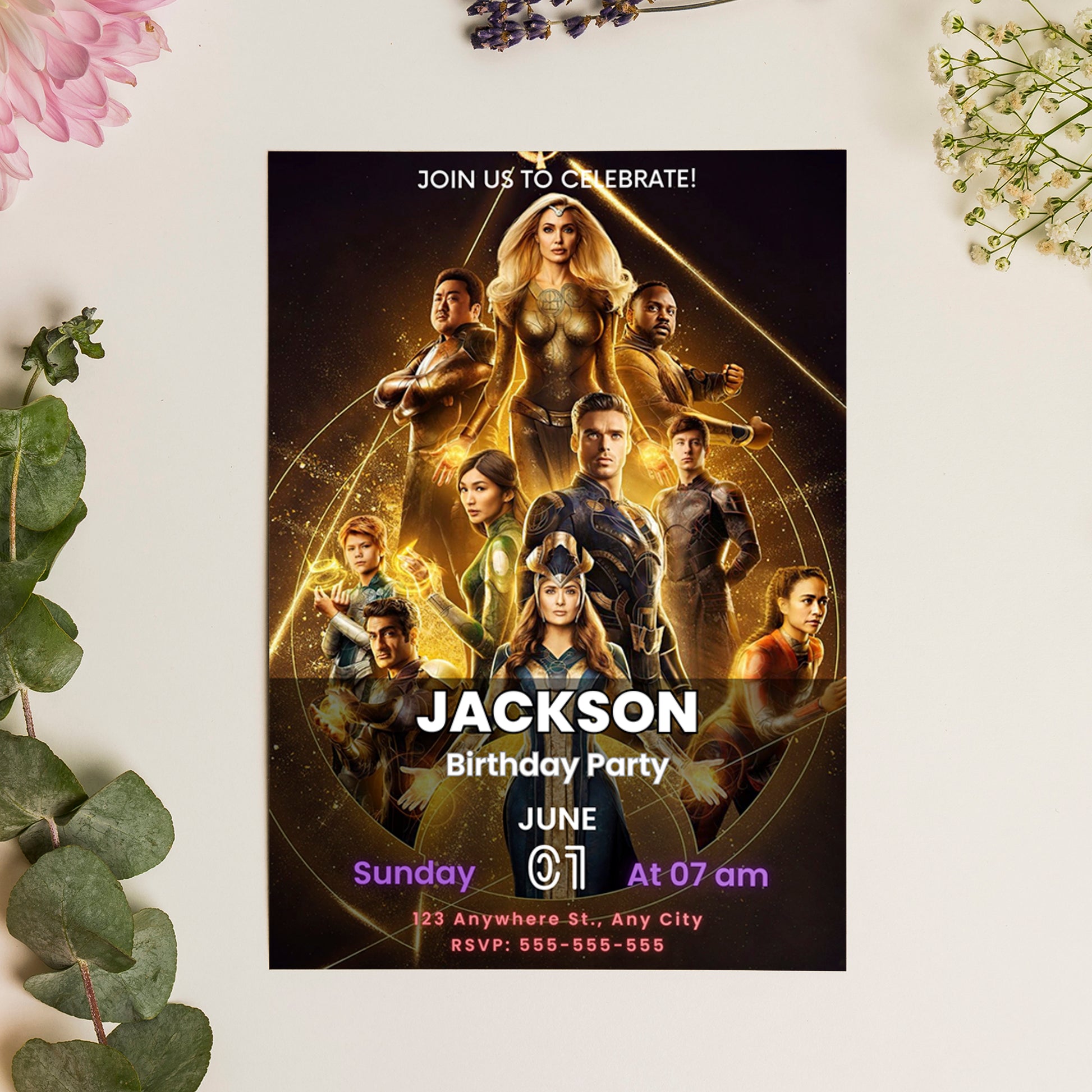 Bring the power of the Eternals to your celebration with this epic Eternals birthday invitation! Get yours