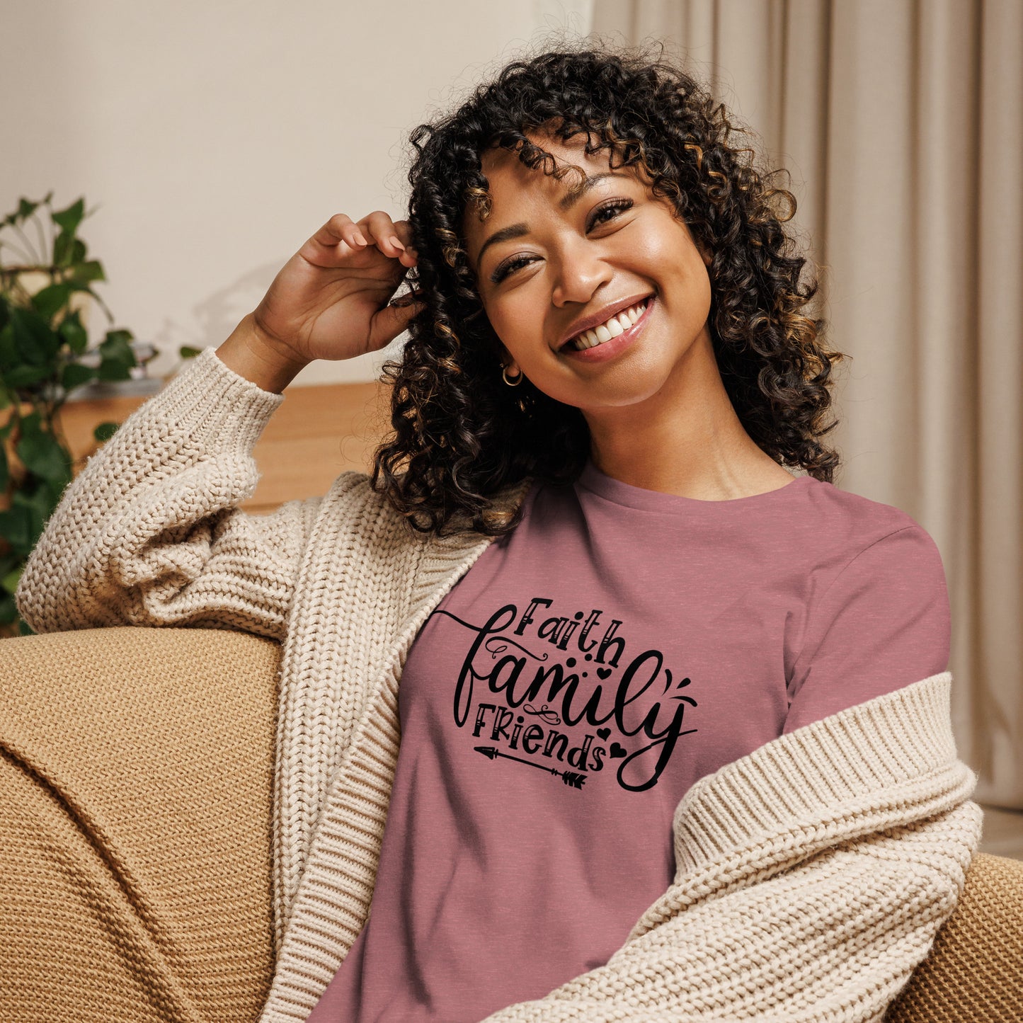 This just might be the softest and most comfortable women's t-shirt you'll ever own. Combine the relaxed fit and smooth fabric of this Faith Family Friends tee with jeans to create an effortless every-day outfit, or dress it up with a jacket and dress pants for a business casual look.