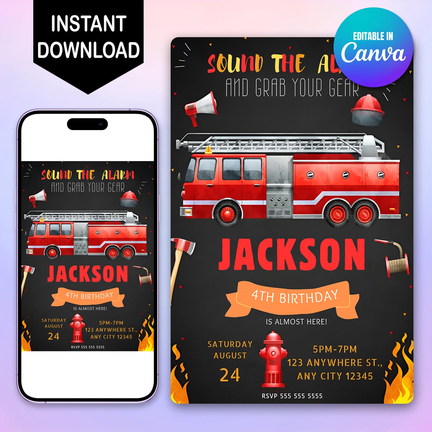 ✔ Print or Send Digitally – Print at home, send via email, or share your Fire Fighter invitation on social media.