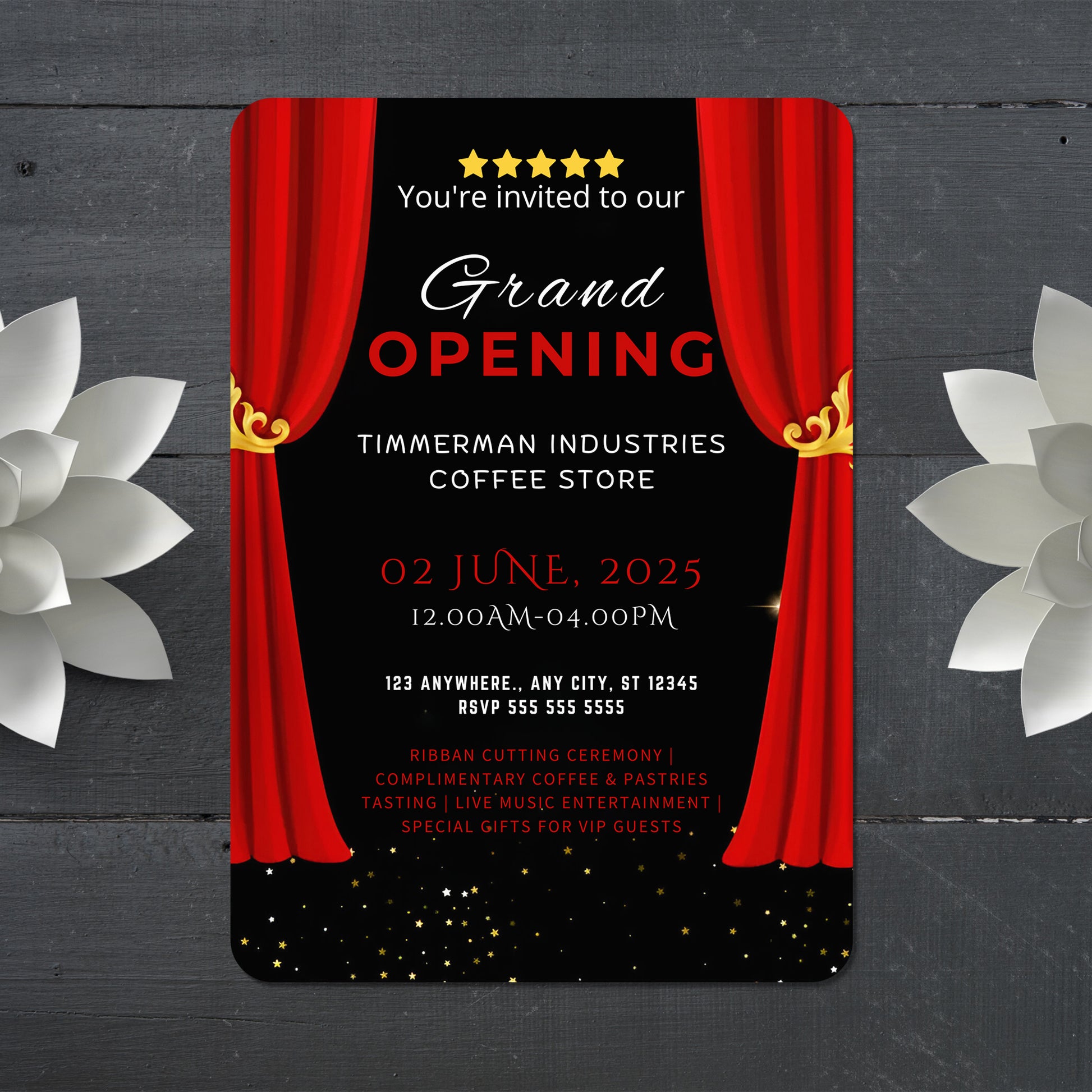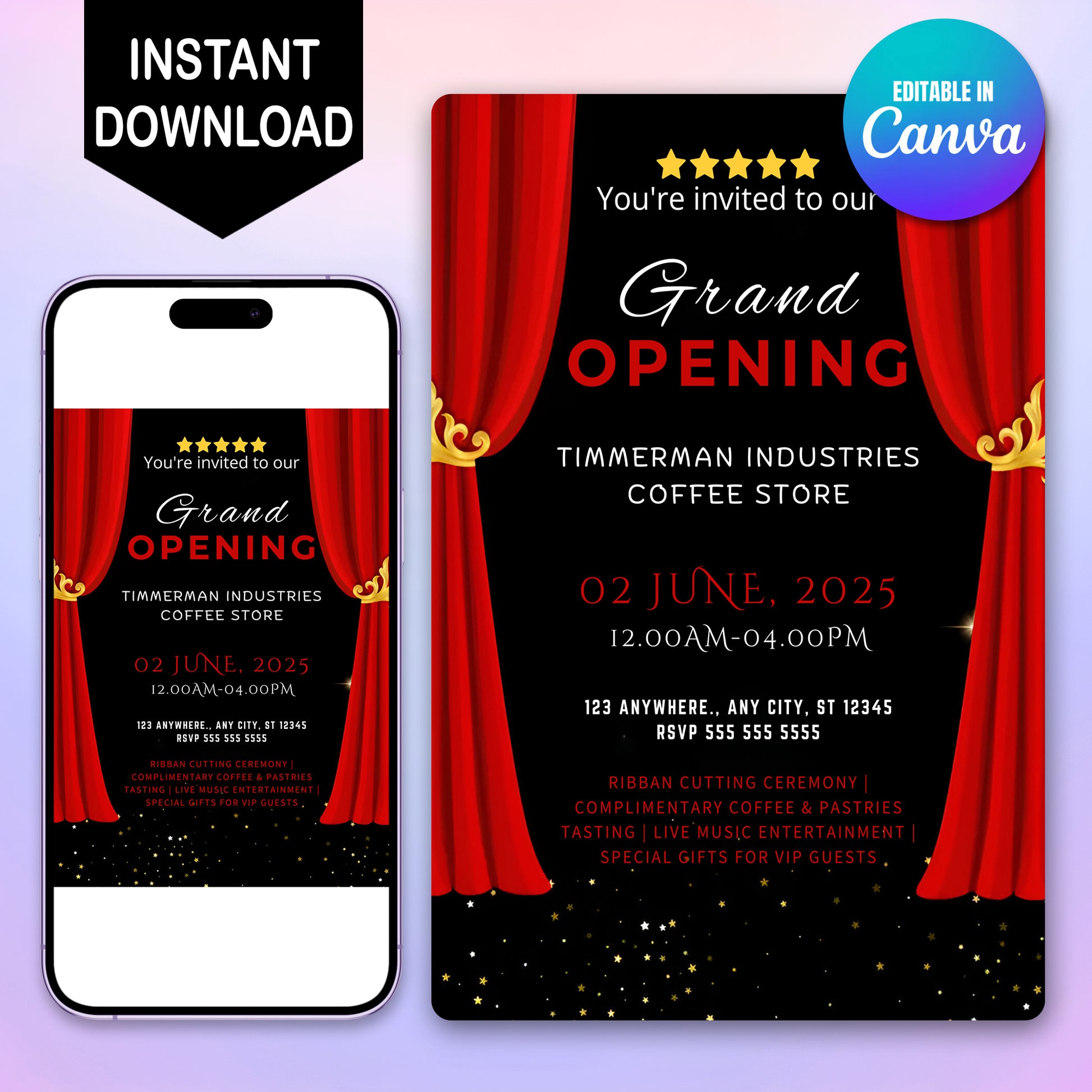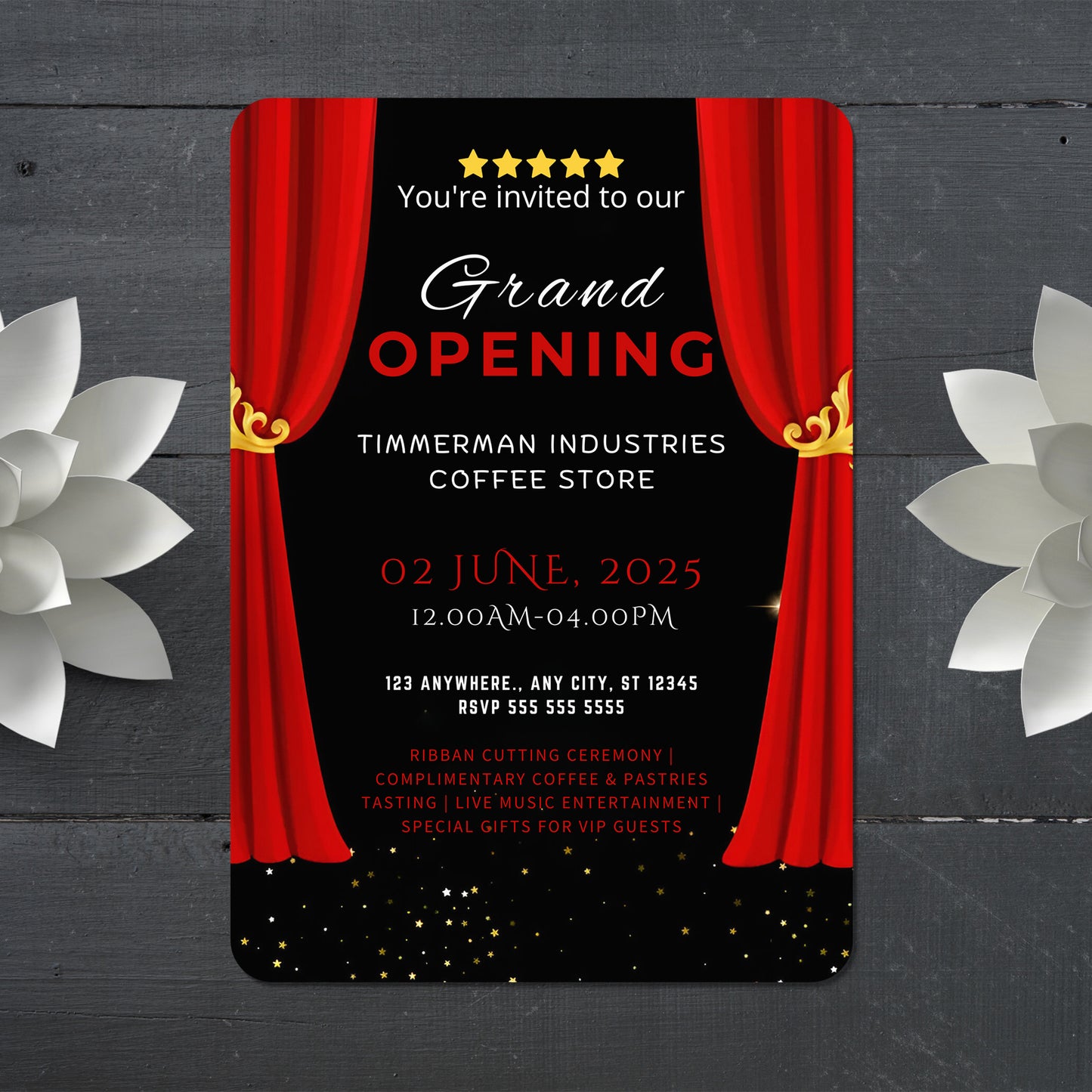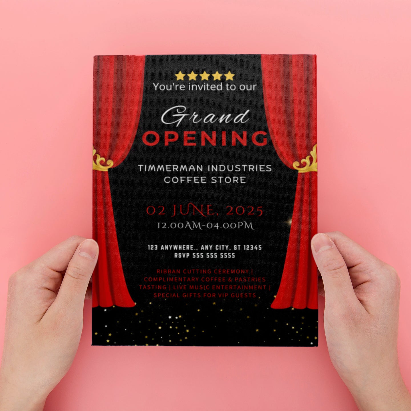 ✨ Professional & Eye-Catching Design – Ideal for a business Grand Opening invitation or personal event.