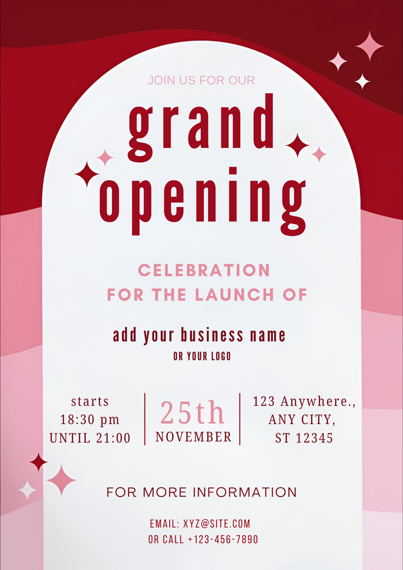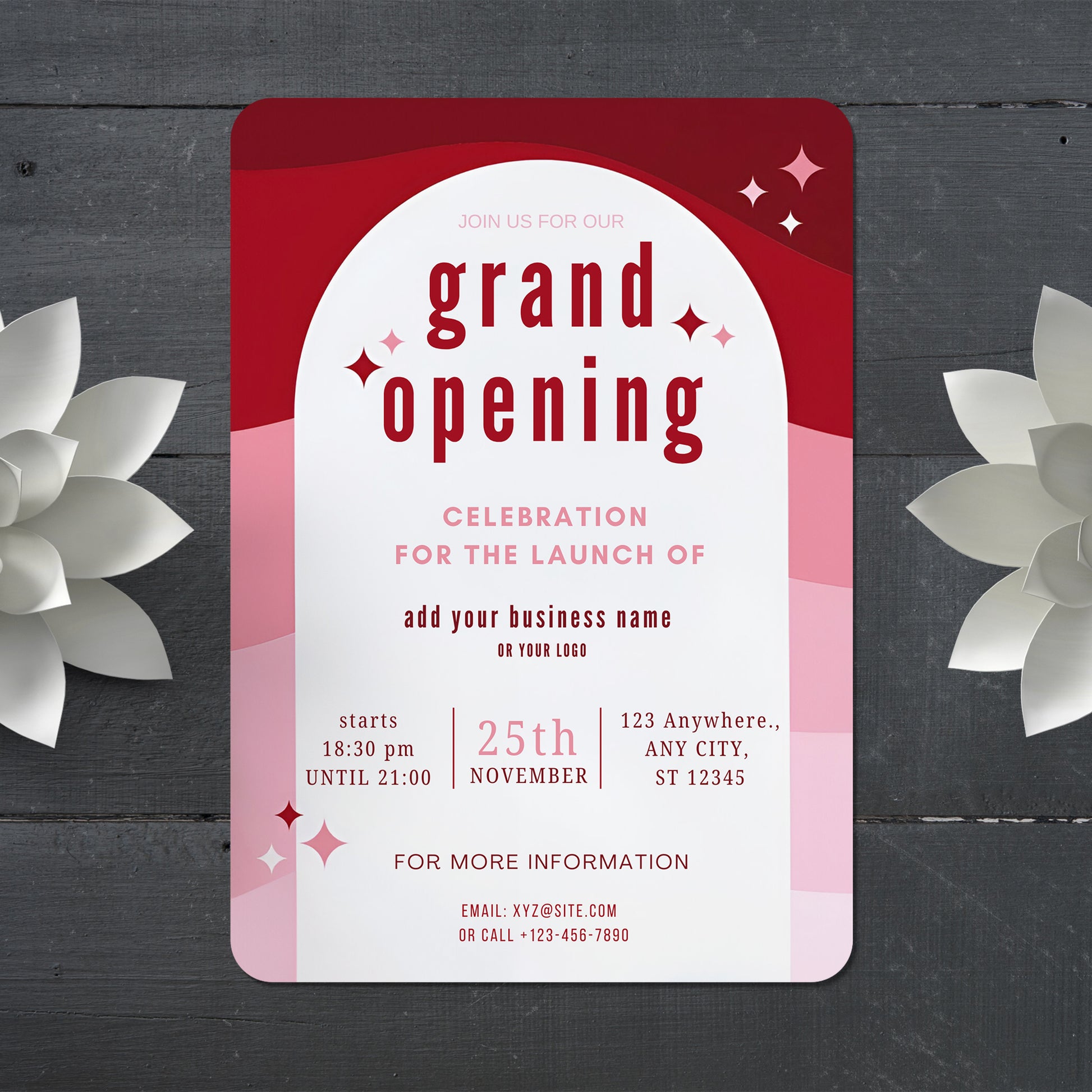 Professional & Eye-Catching Design – Ideal for a business Grand Opening invitation or personal event.