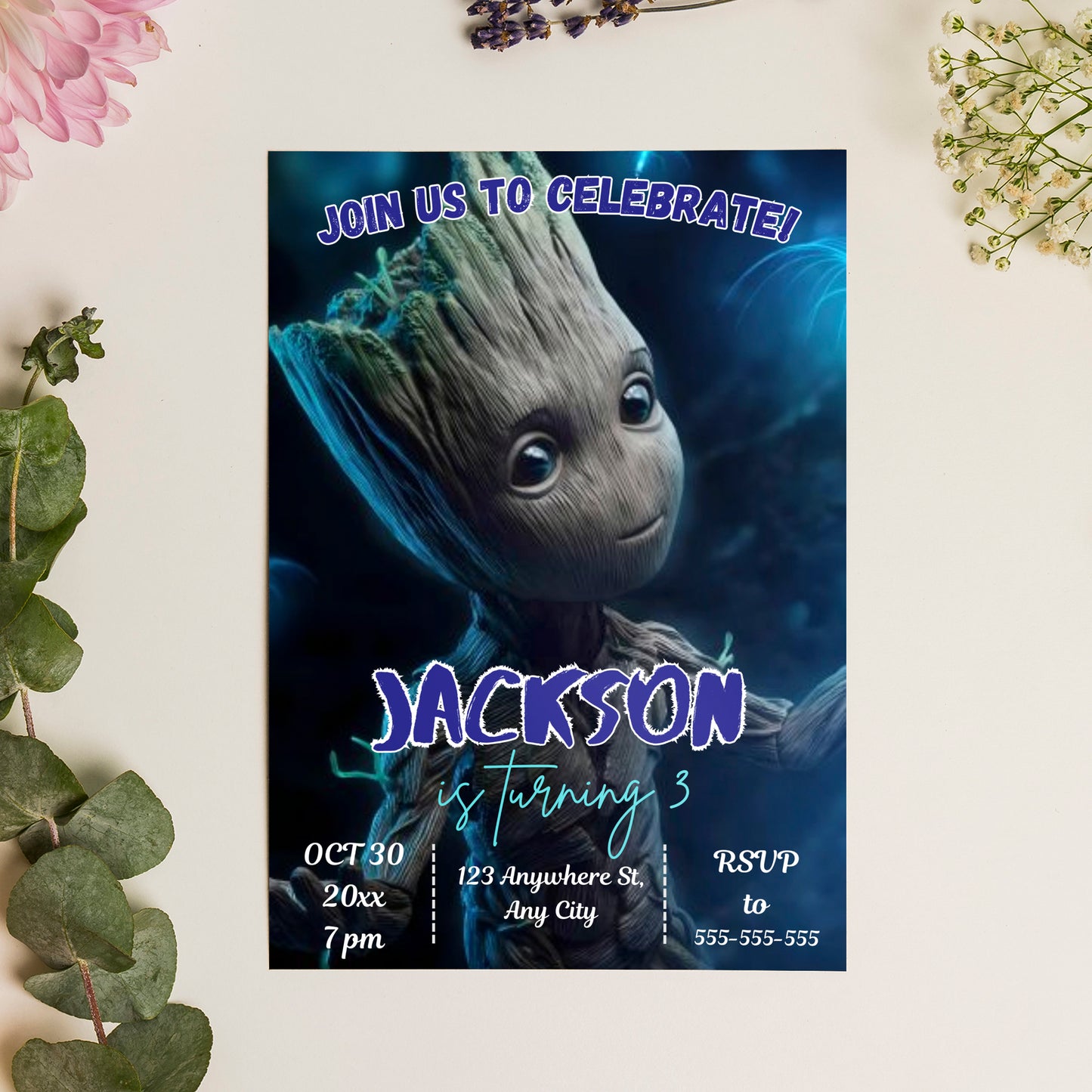 Celebrate the Birthday and invite the friends and family with Groot Birthday Invitation. Make a lasting impression and create a memorable experience for your guests with this unique and stunning invitation.