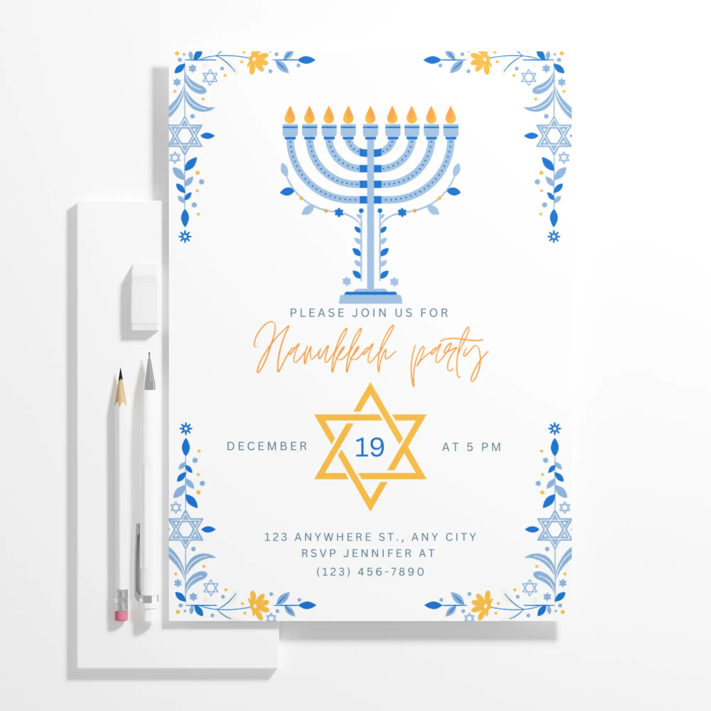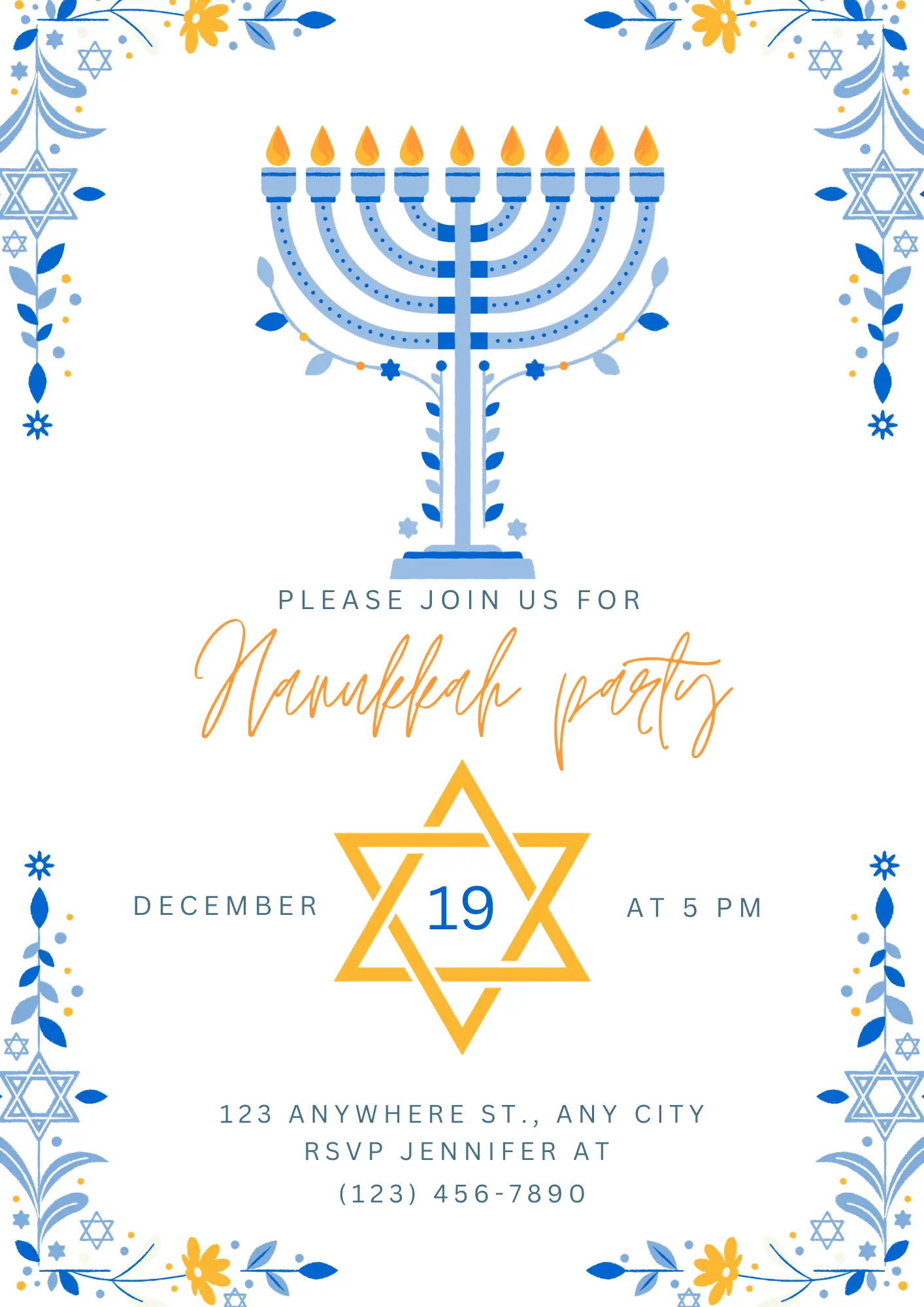 Hanukkah Invitation Template | Hanukkah Celebration Party Invite