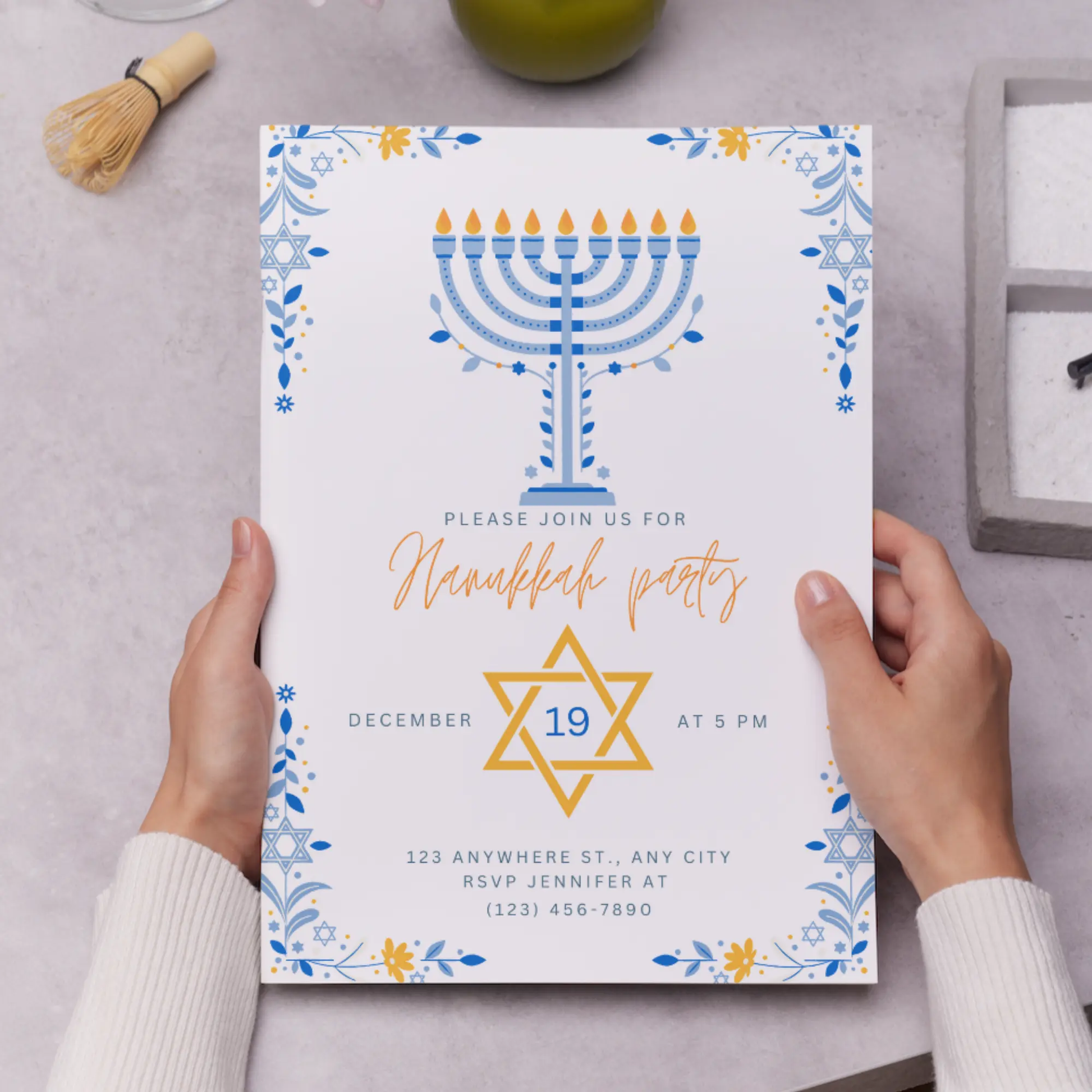 Celebrate the Hanukkah and invite your friends and family with Hanukkah Invitation. Make a lasting impression and create a memorable experience for your guests with this unique and stunning invitation.