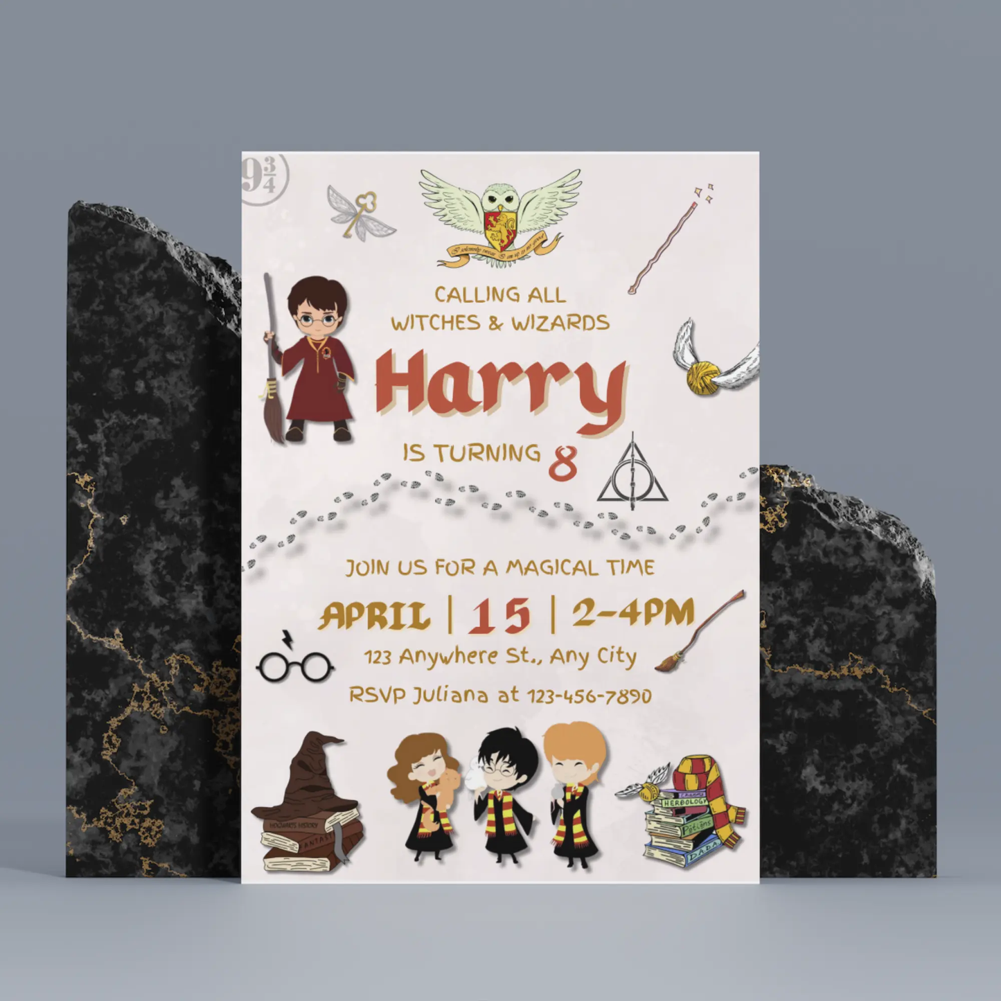Celebrate the Birthday and invite the friends and family with Harry Potter Birthday Invitations. Make a lasting impression and create a memorable experience for your guests with this unique and stunning invitation.
