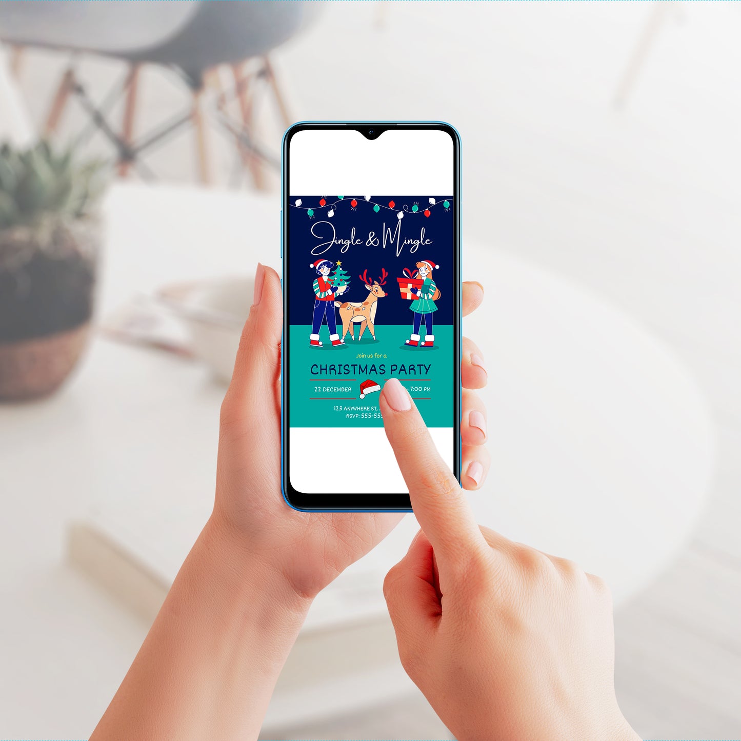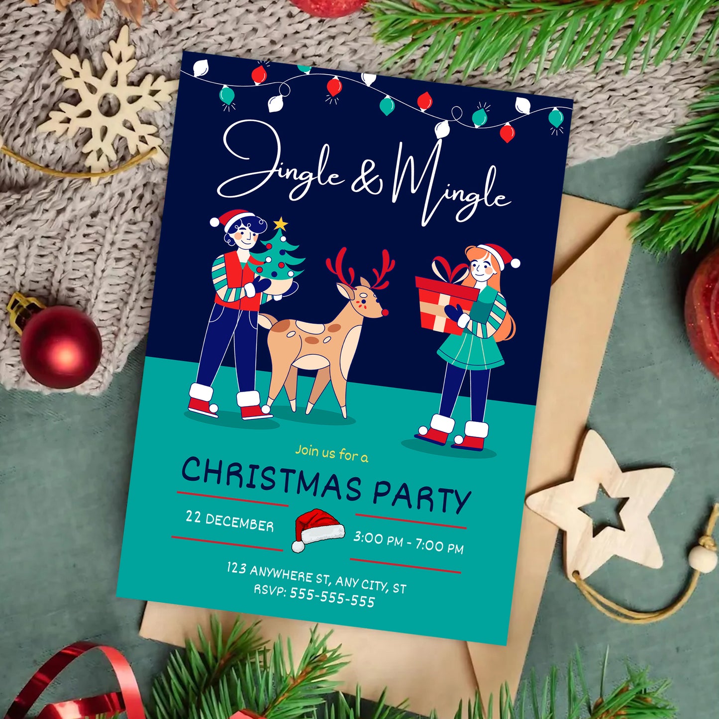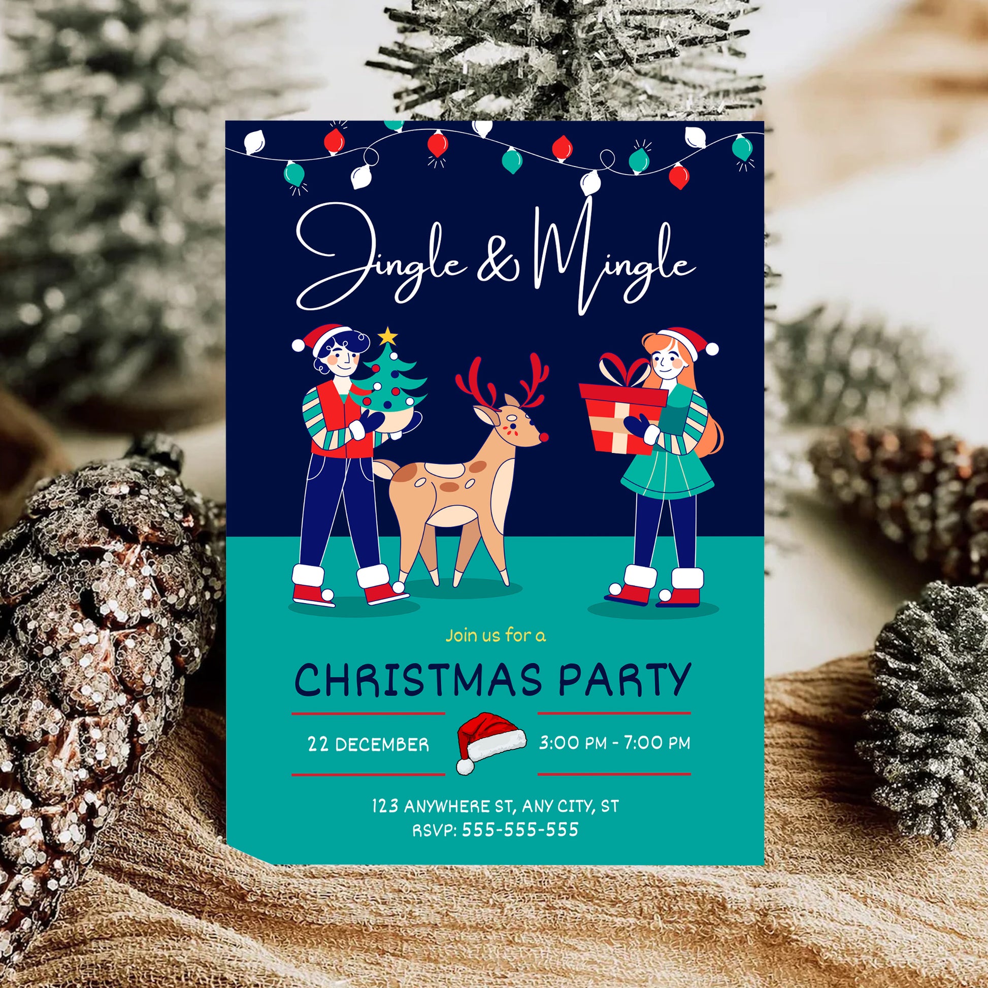 Jingle & Mingle Christmas Party Invitation Template | Reindeer Christmas Party Invite