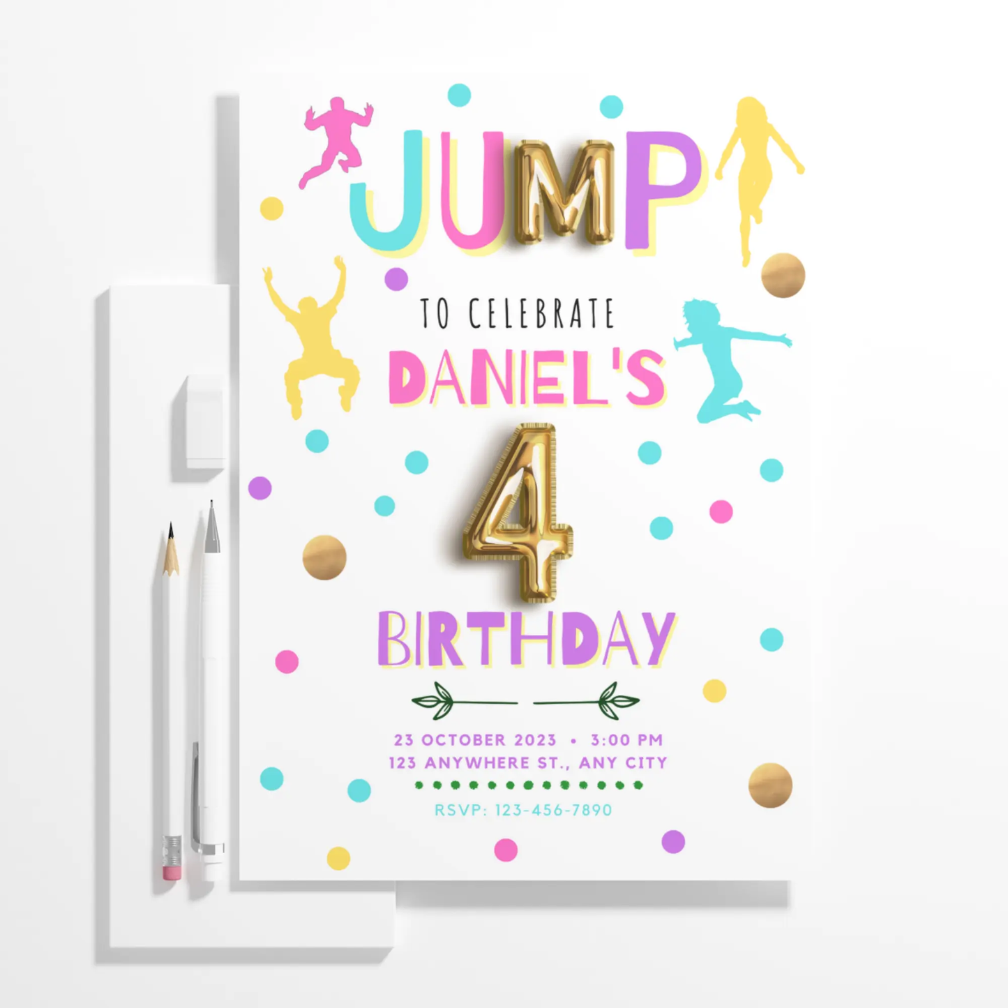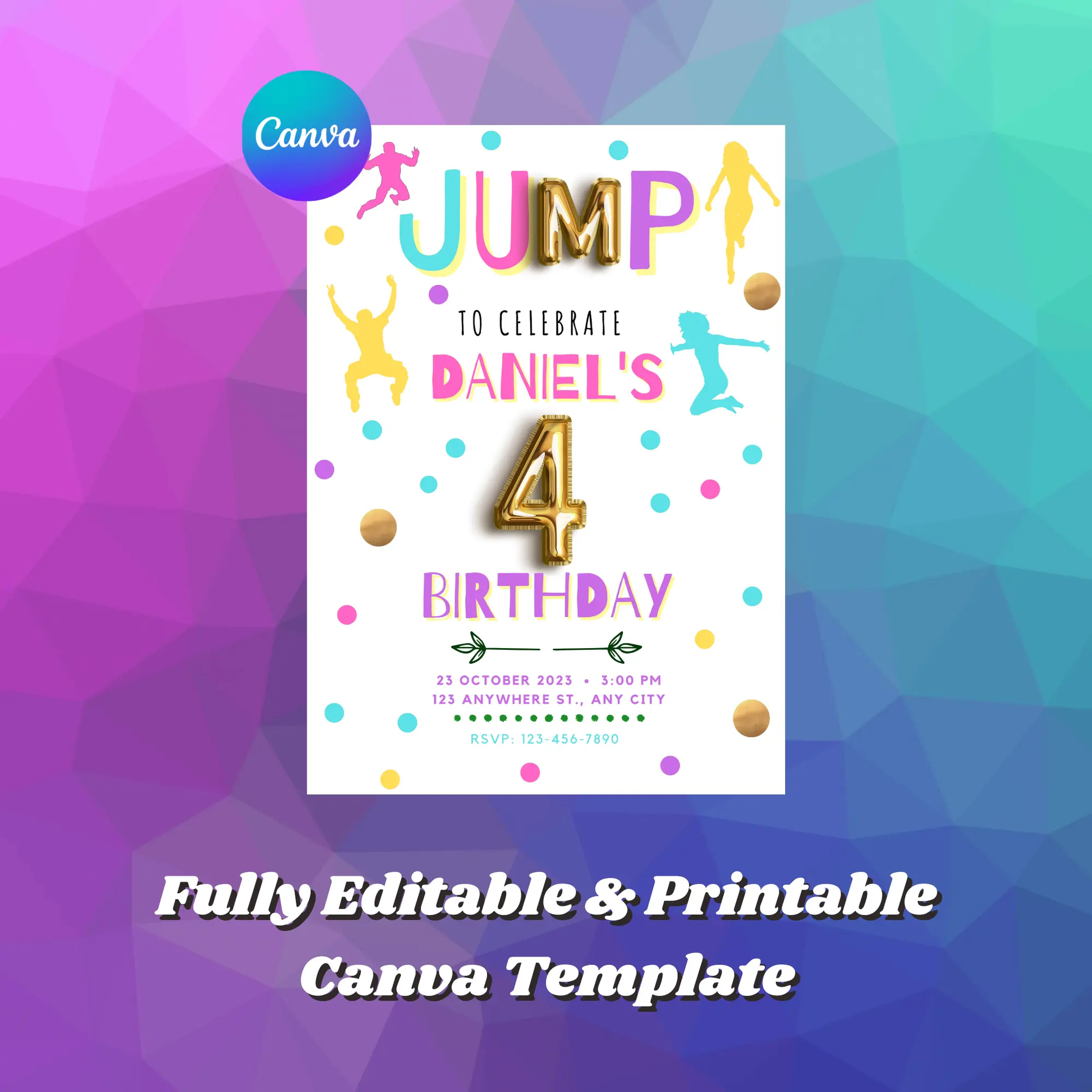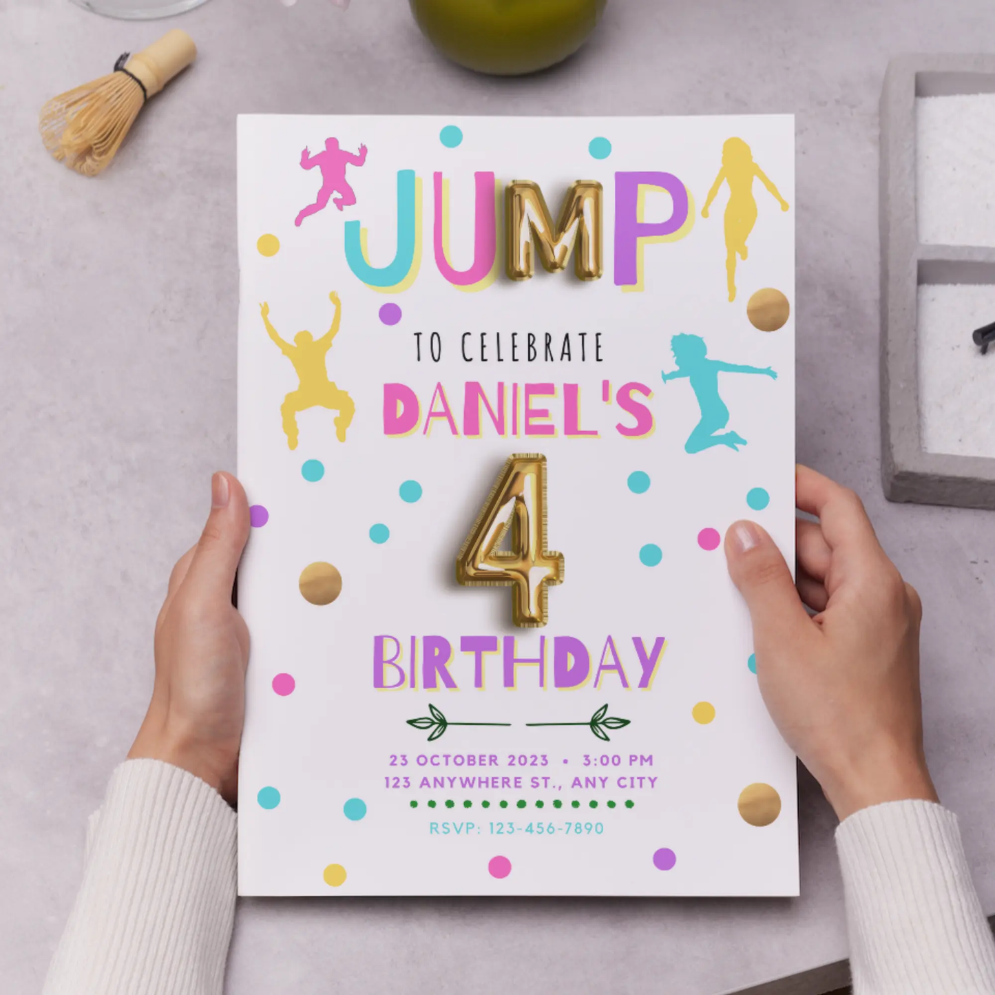 Welcome to CreativeRino, your go-to source for unique and customizable party invitations! Our Editable Digital Printable Jump Birthday Invitation Canva Template is the perfect way to add a personal touch to your Birthday Party Celebrations.