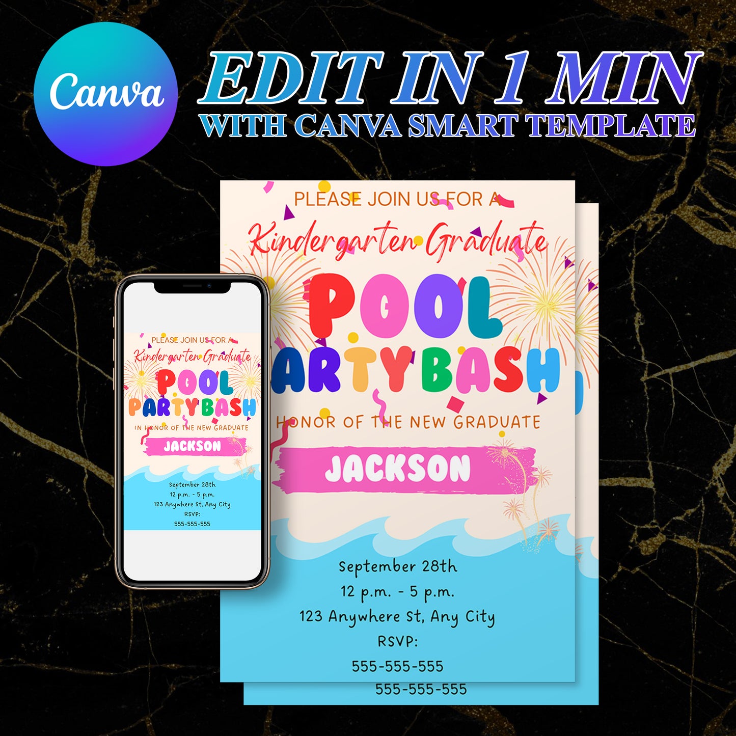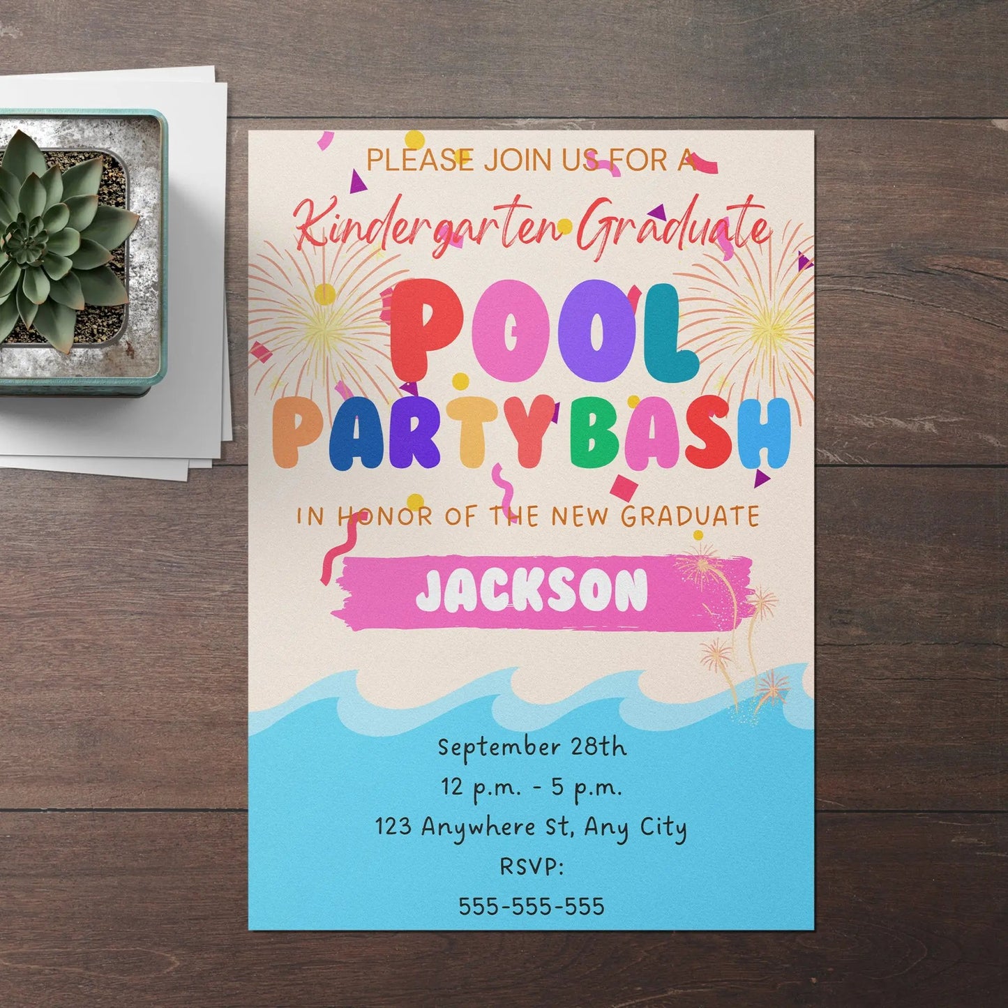 Welcome to CreativeRino, your go-to source for unique and customizable party invitations! Our Editable Digital Printable Kindergarten Graduation Pool Party Invitation Canva Template is the perfect way to add a personal touch to your Birthday Party Celebrations.