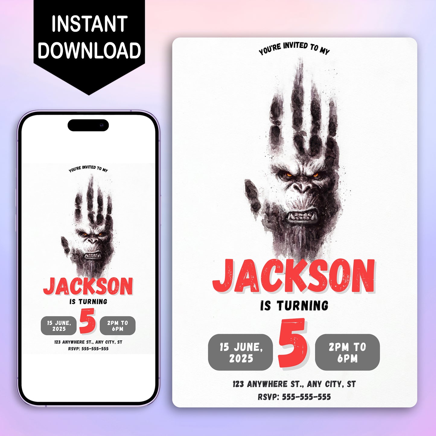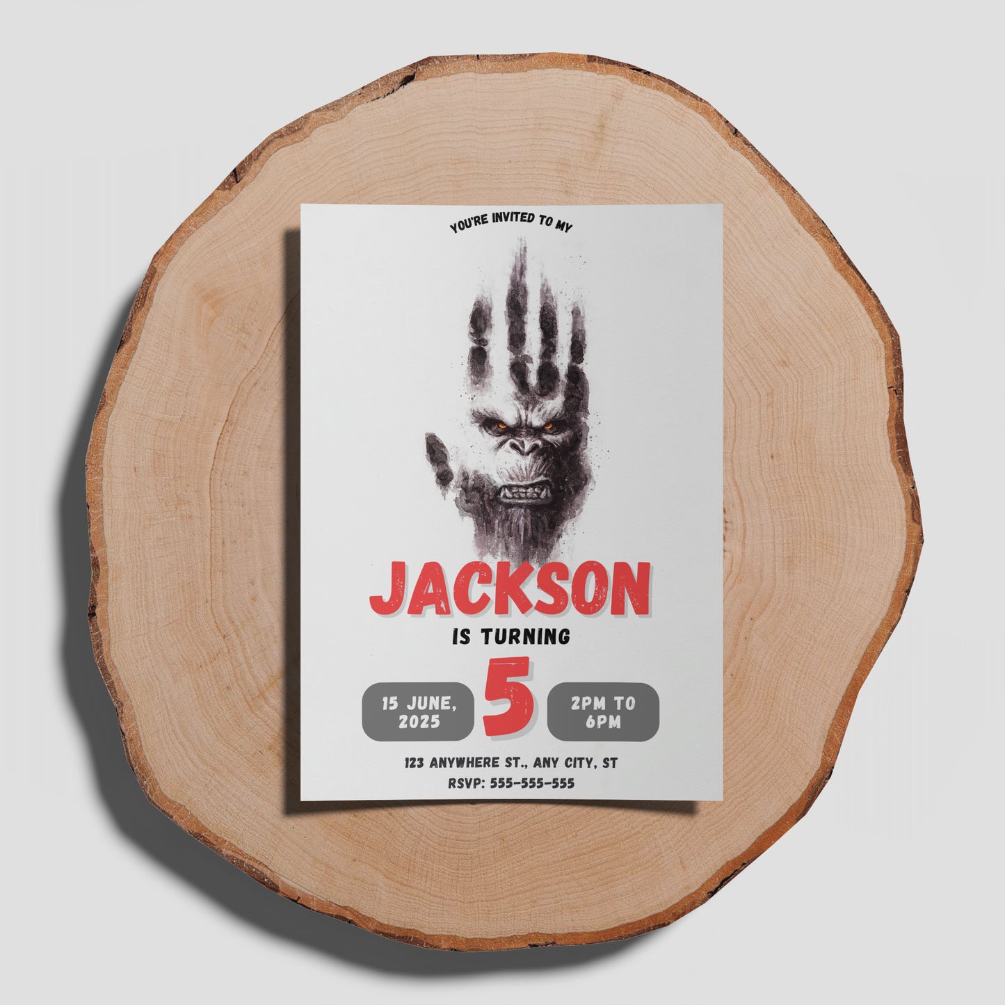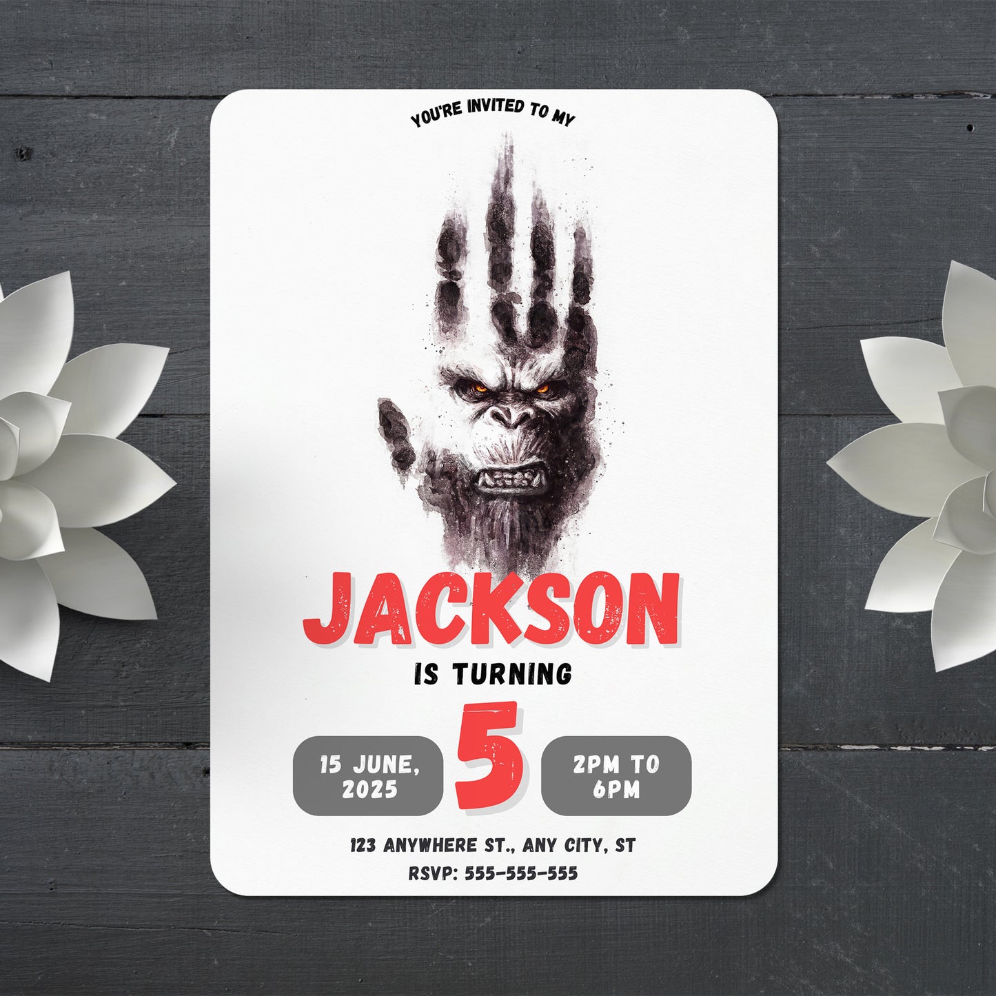 Celebrate the Birthday and invite the friends and family with King Kong Birthday Invitation. Make a lasting impression and create a memorable experience for your guests with this unique and stunning invitation.