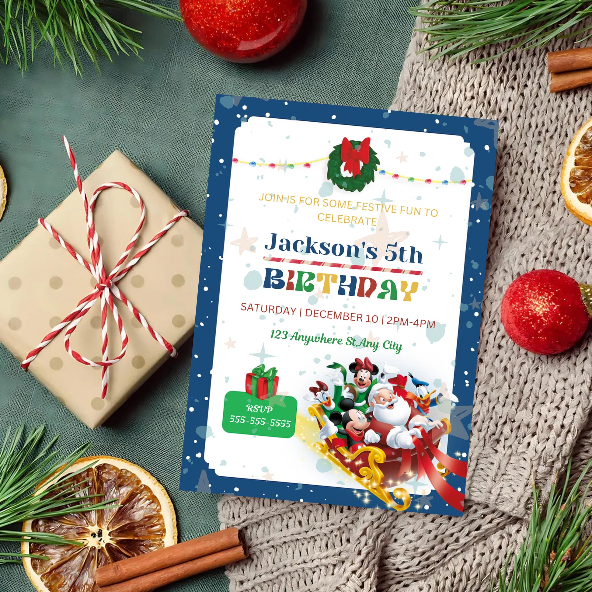 Mickey Mouse Christmas Party Invitation Template | Santa Christmas Party Invite