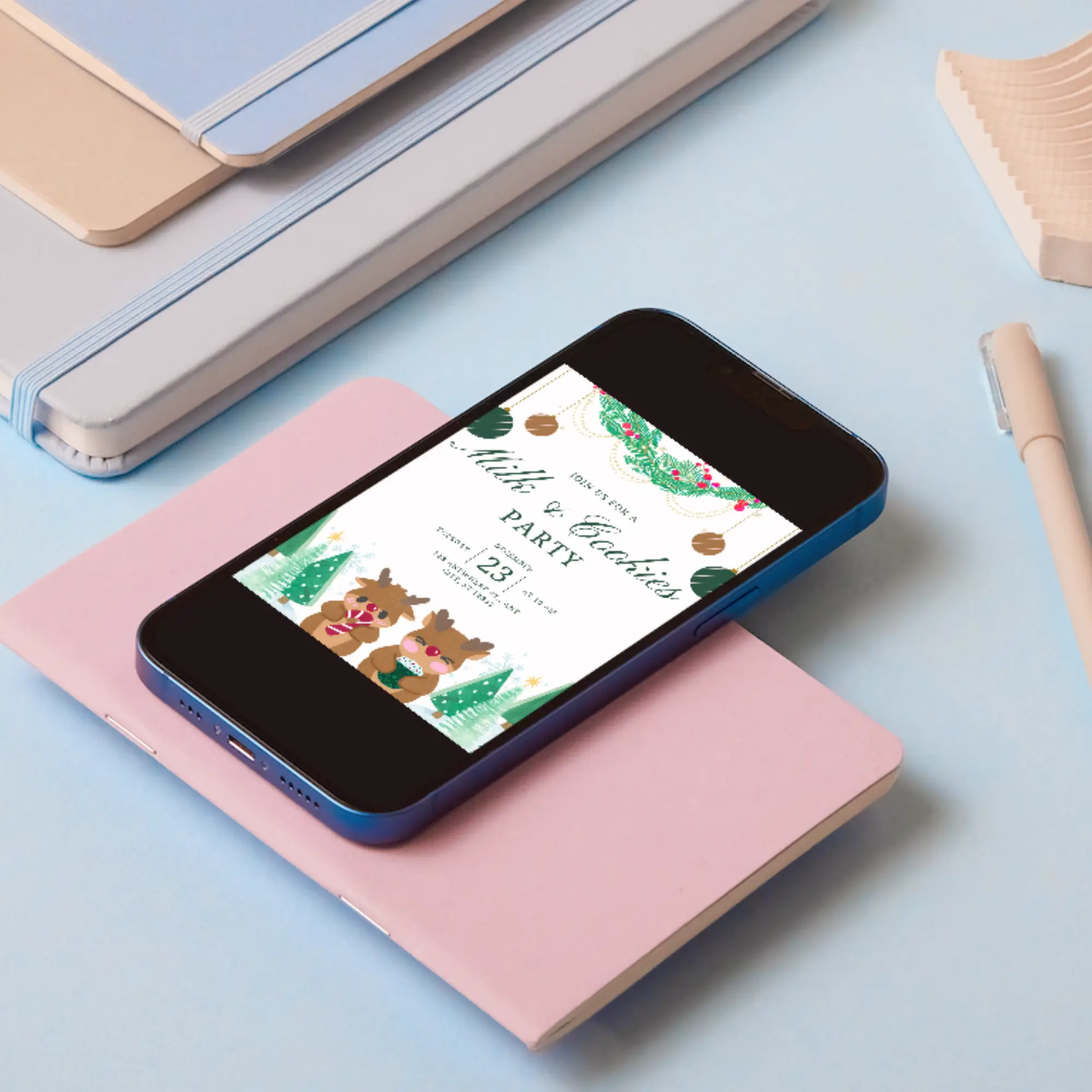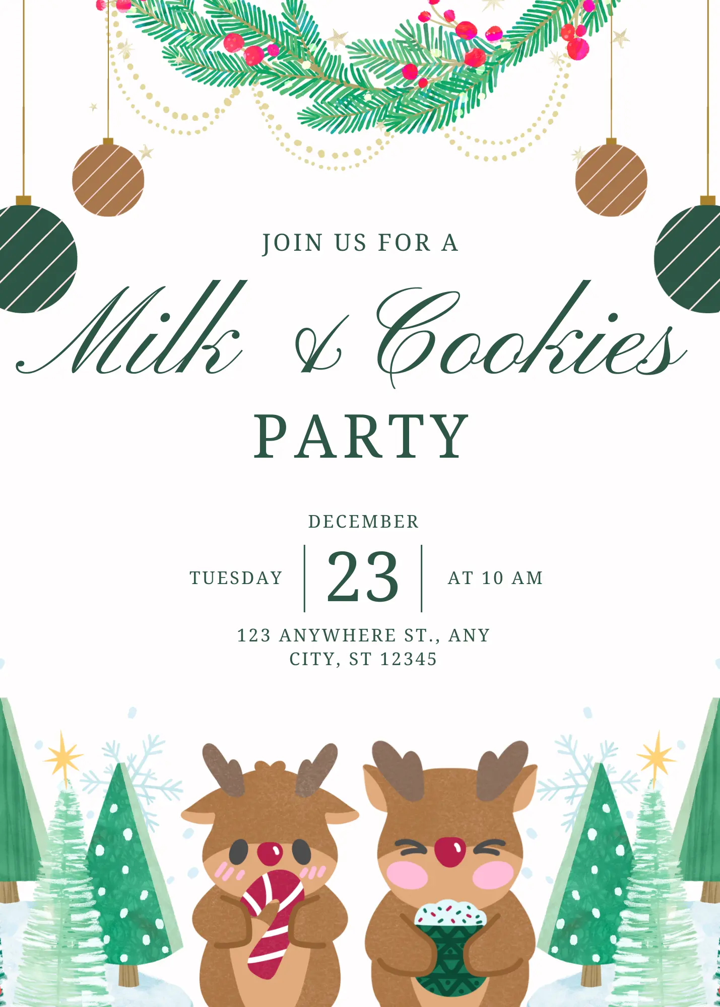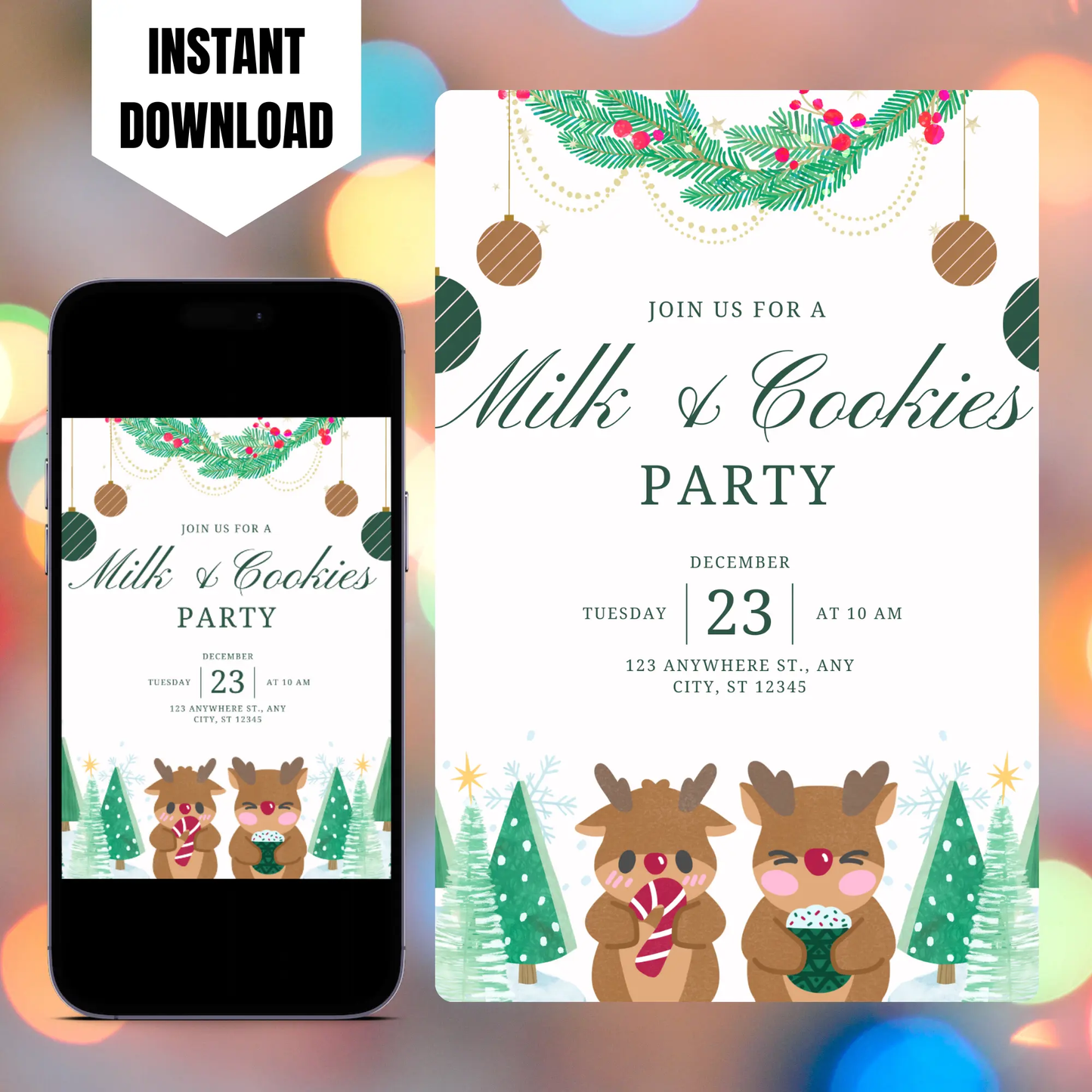Introducing our enchanting Digital Customizable Milk and Cookies Invitation Template from CreativeRino! Set the festive tone for your holiday celebration with this charming and easy-to-personalize invitation.