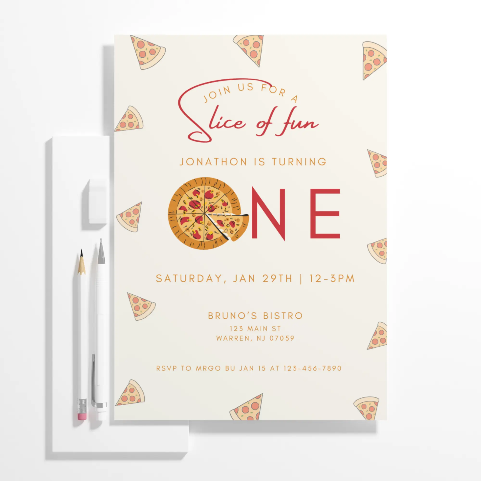 Pizza Slice of Fun Birthday Invitation Template