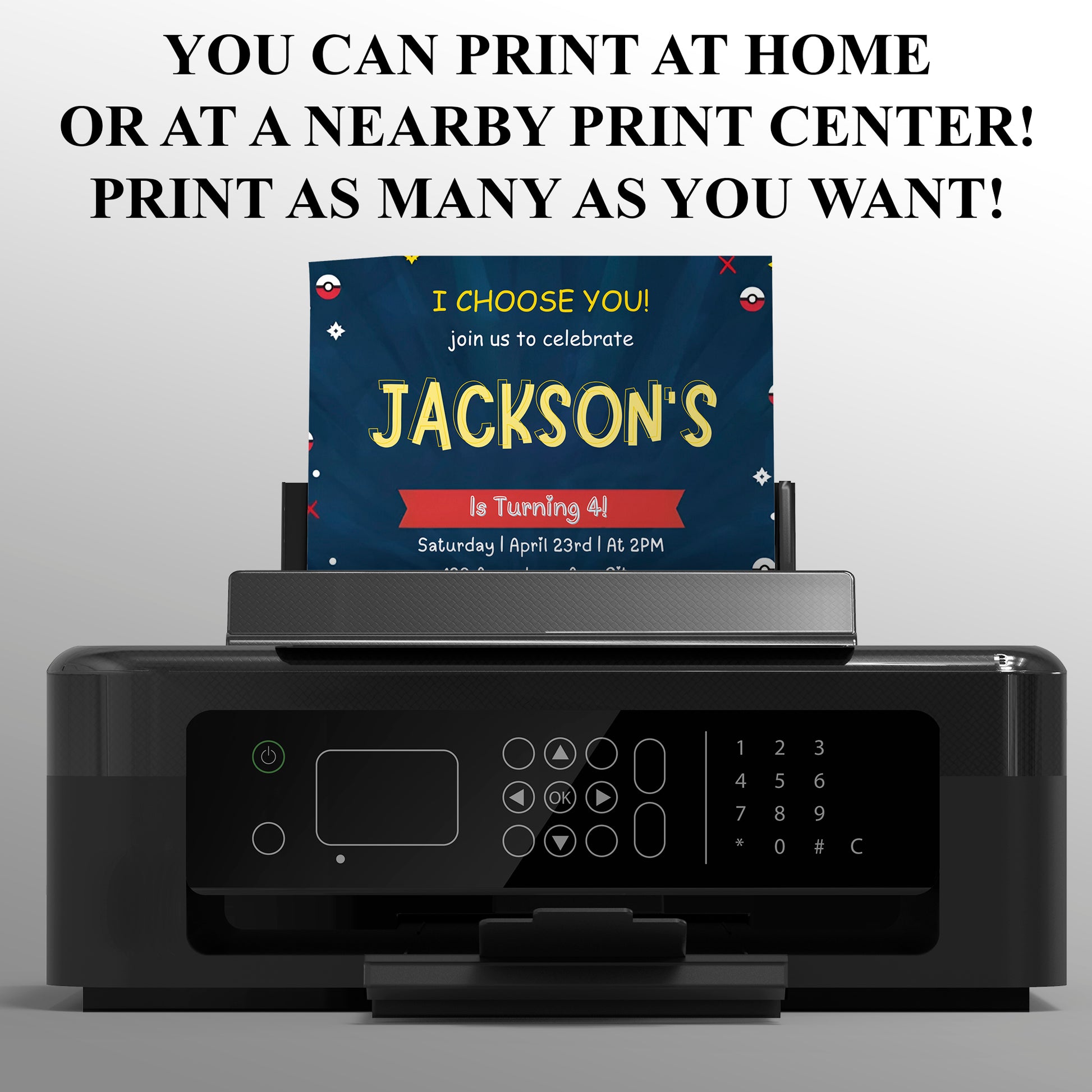 3️⃣ Save & print or send digitally to invite your fellow Pokémon Trainers!