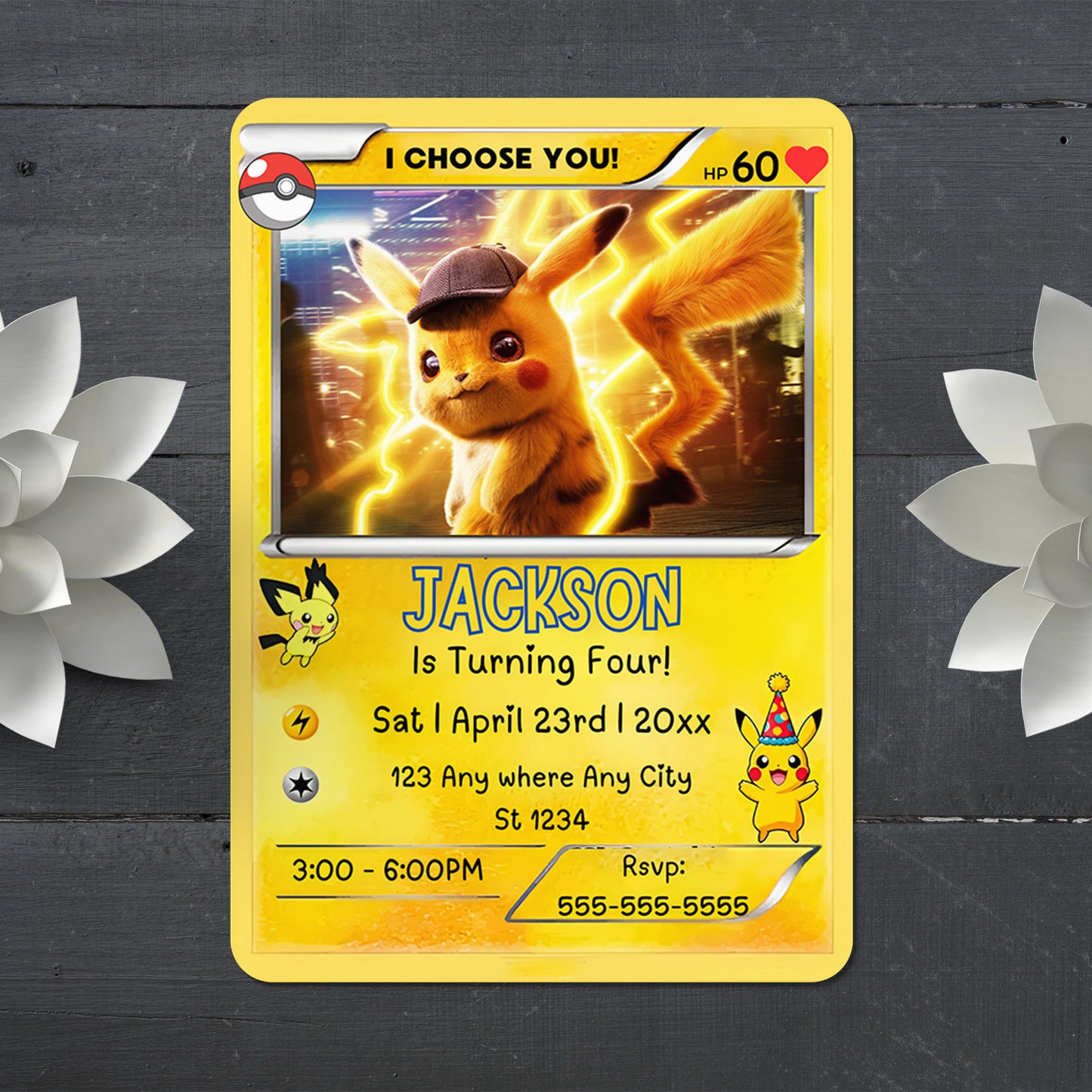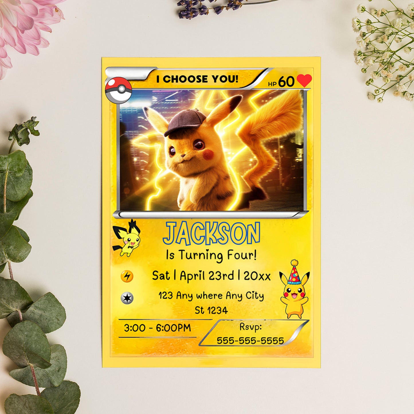 Make your Pokémon birthday an unforgettable adventure with this Pokémon birthday invitation. Get yours today and catch ‘em all for an amazing celebration! 🎂⚡🎈