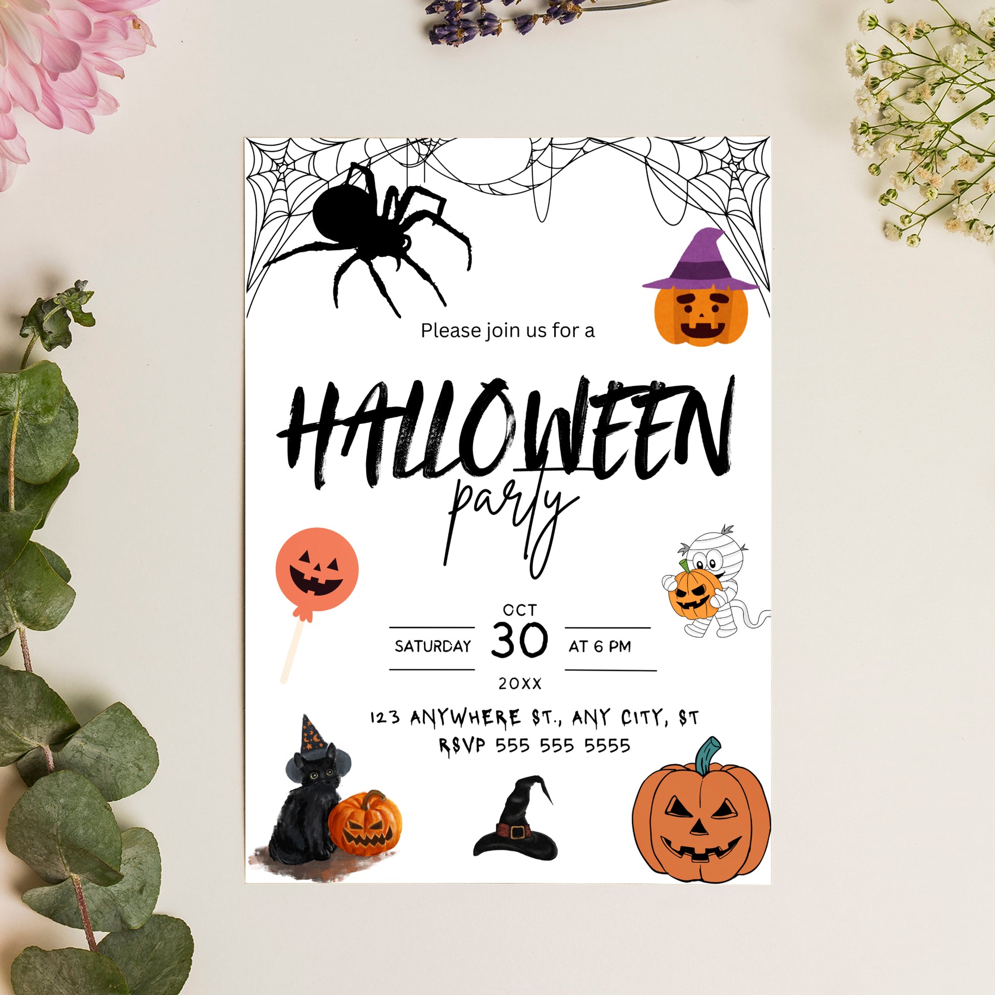 Pumpkin and Spider Halloween Party Invitation Template
