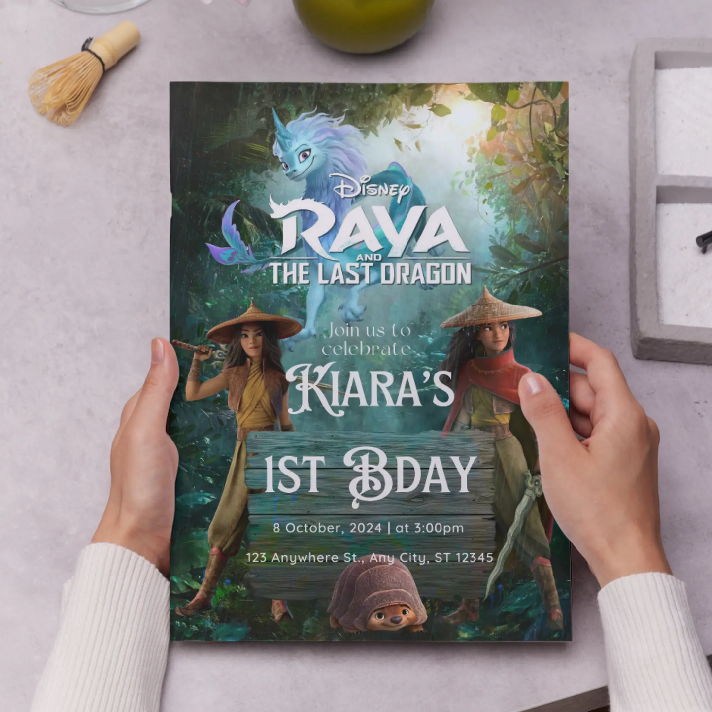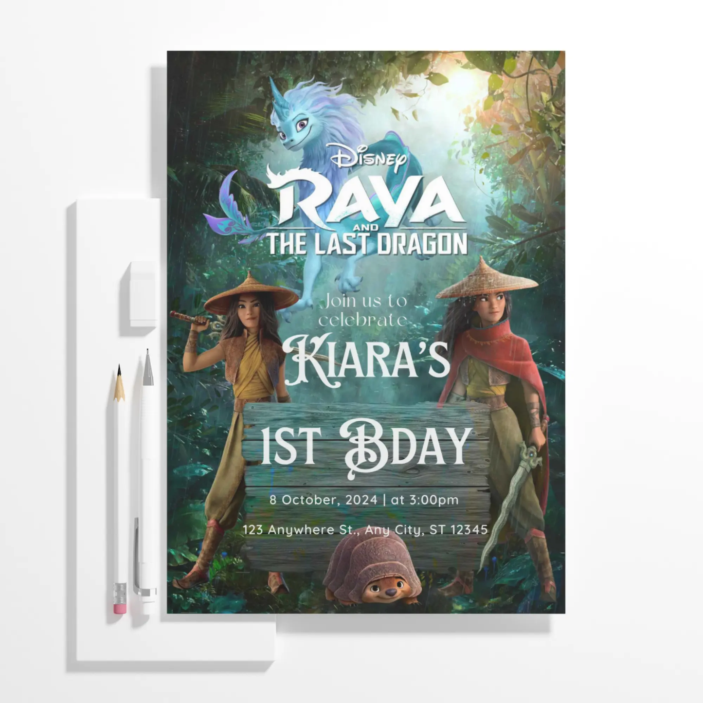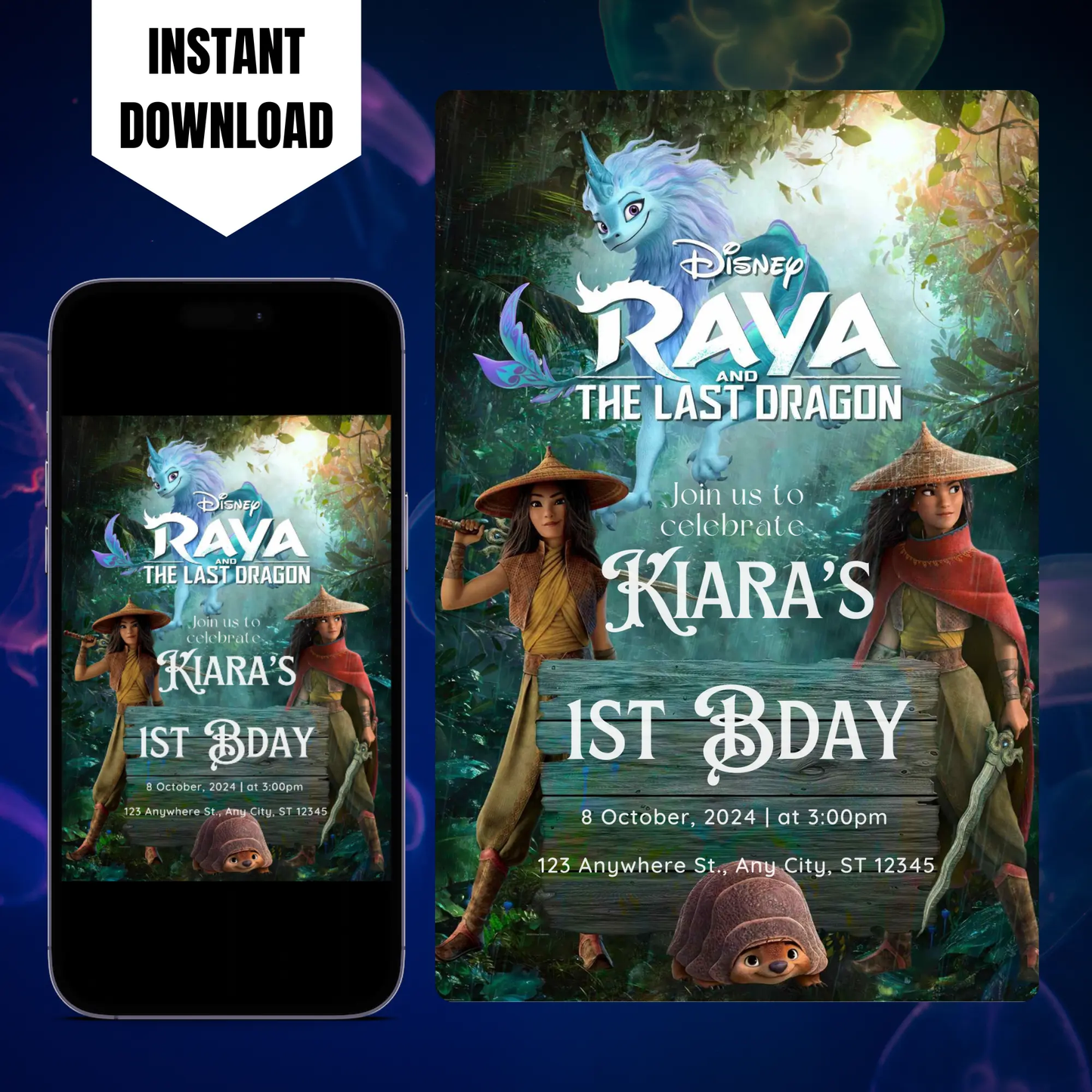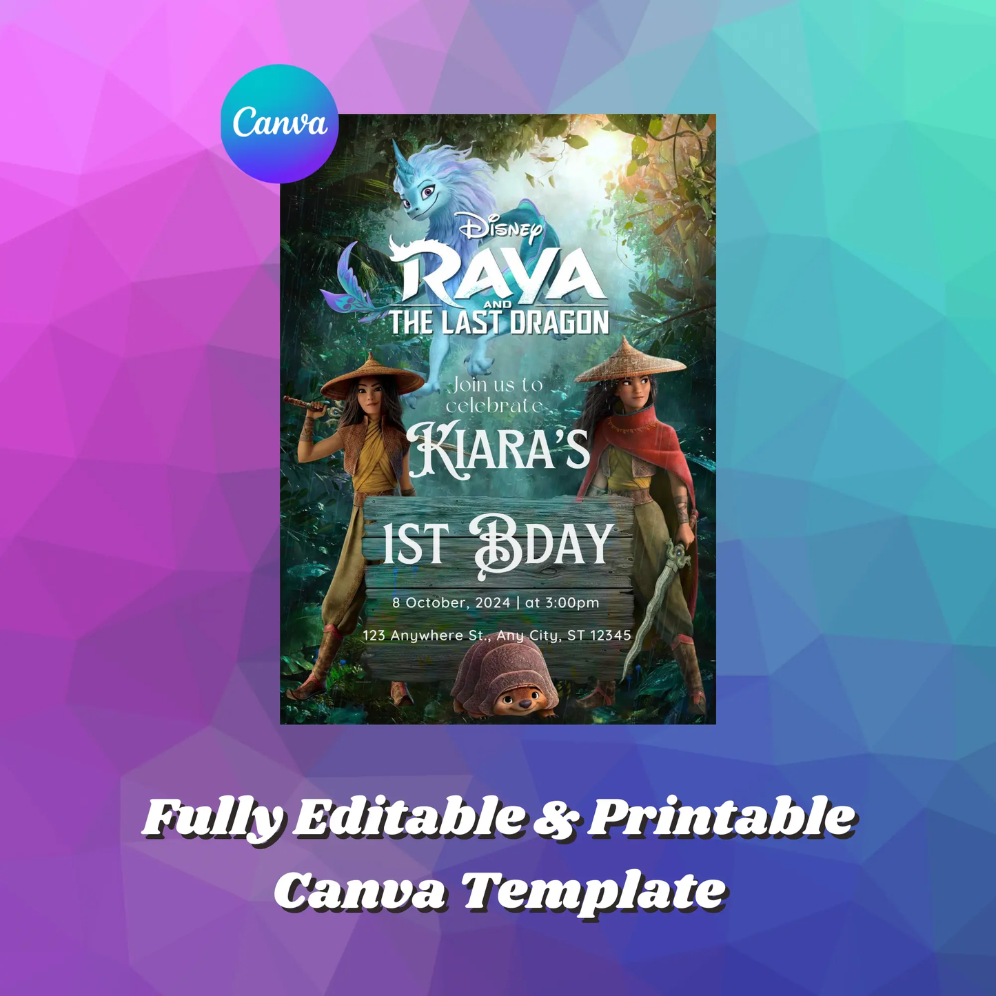 Welcome to CreativeRino, your go-to source for unique and customizable party invitations! Our Editable Digital Printable Rava and the last Dragon Birthday Invitation Canva Template is the perfect way to add a personal touch to your Birthday Party Celebrations.