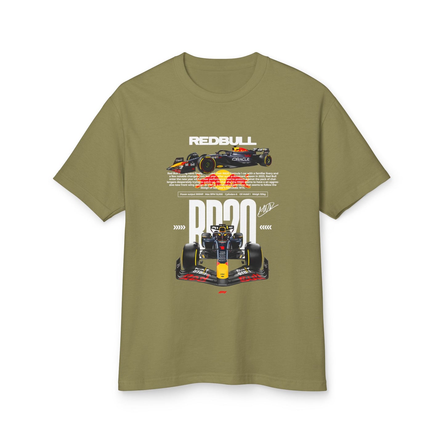 RED BULL RB20 Unisex Racing-Themed Heavyweight Cotton Tee - Car T-shirt