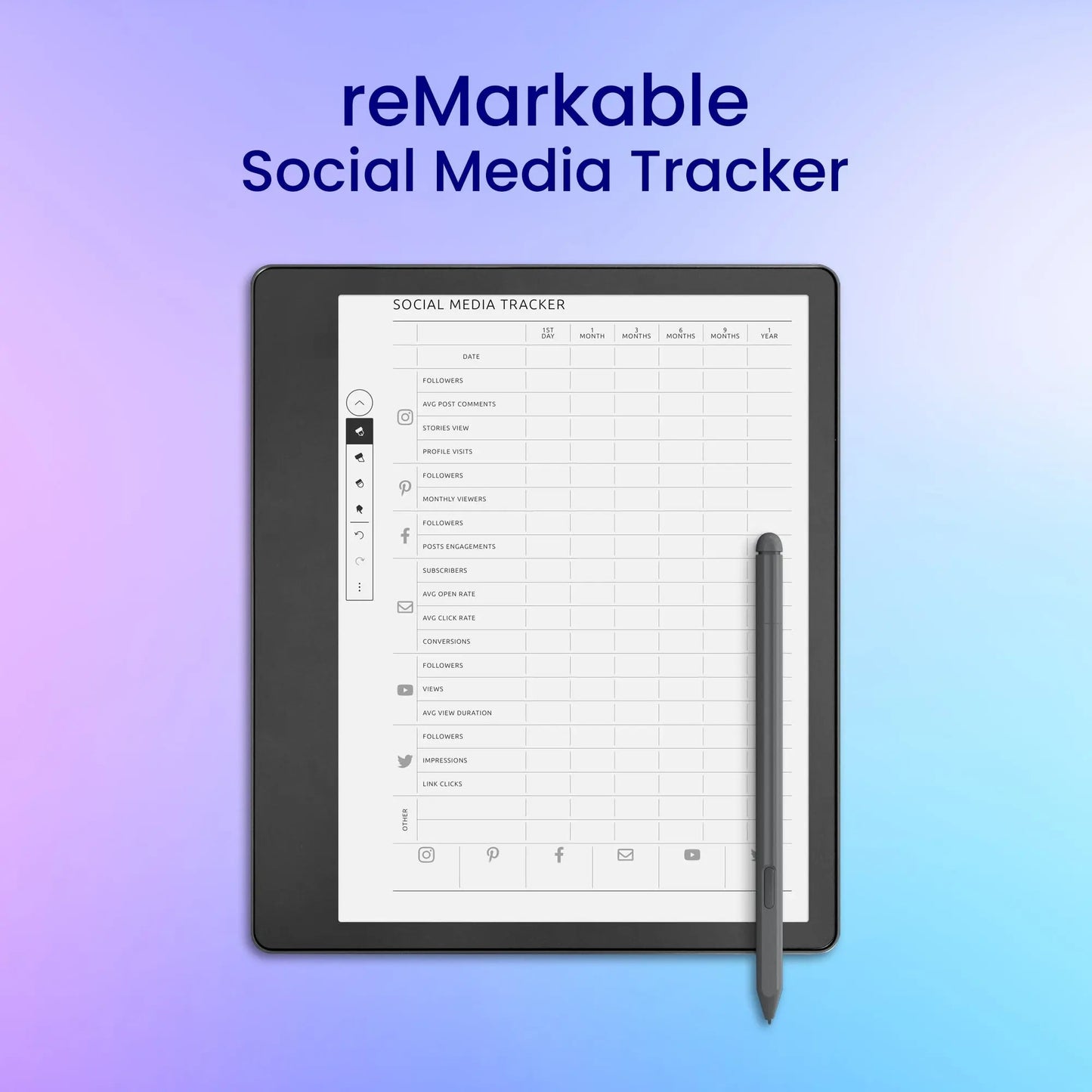 Introducing our reMarkable 2 Social Media Tracker Planner Template from CreativeRino, your ultimate solution for staying organized and stylishly on track! This versatile template is perfect for planning your month ahead with ease. Crafted with precision and attention to detail, our template boasts a sleek design that complements any workspace.