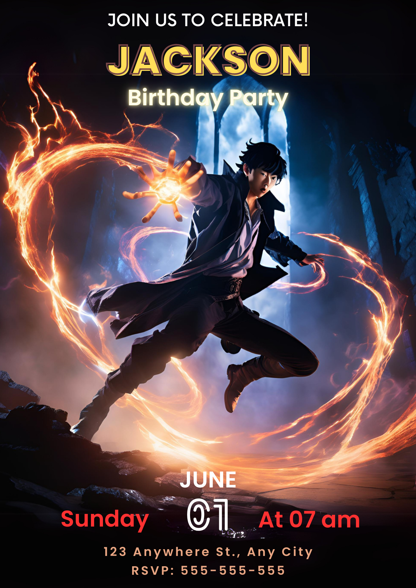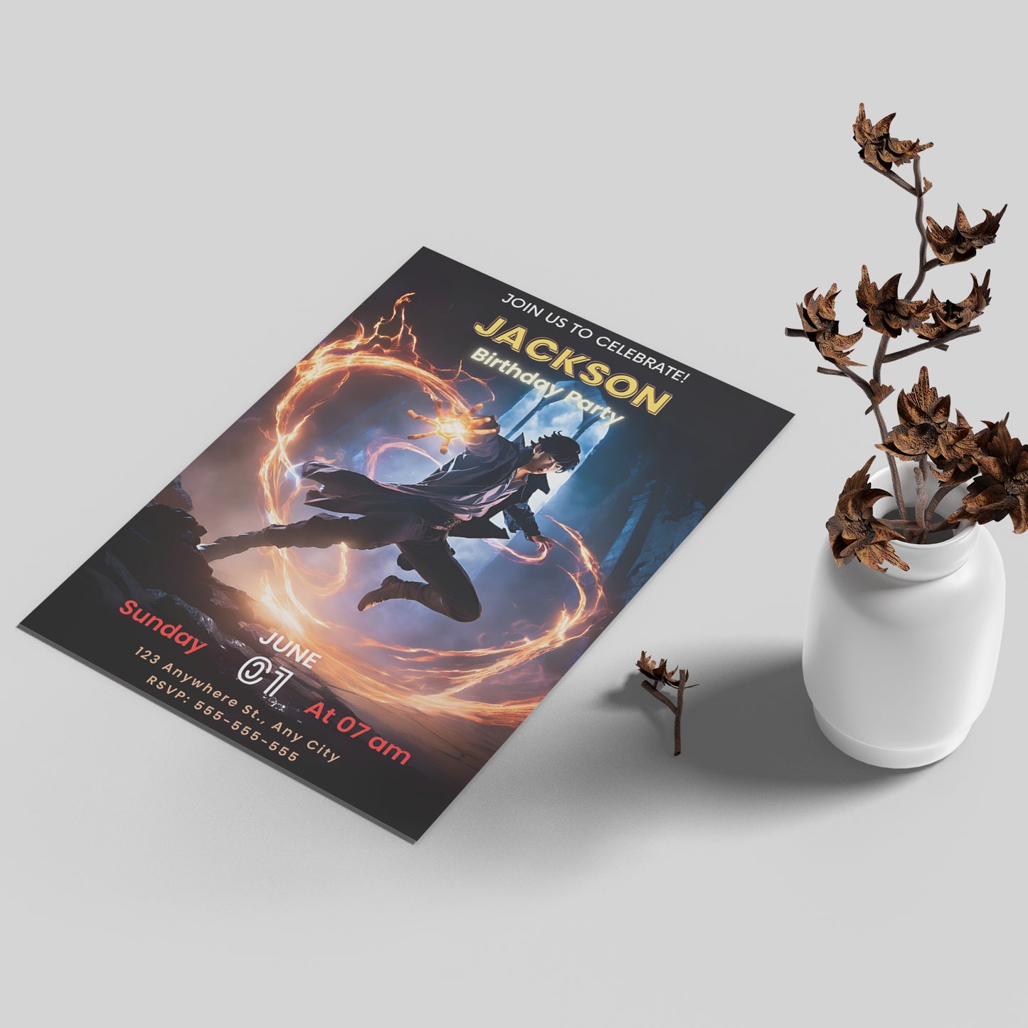 Make your Solo Leveling birthday an epic quest with this Solo Leveling birthday invitation. Get yours today and step into the world of ultimate power! 🎂🔥⚔️