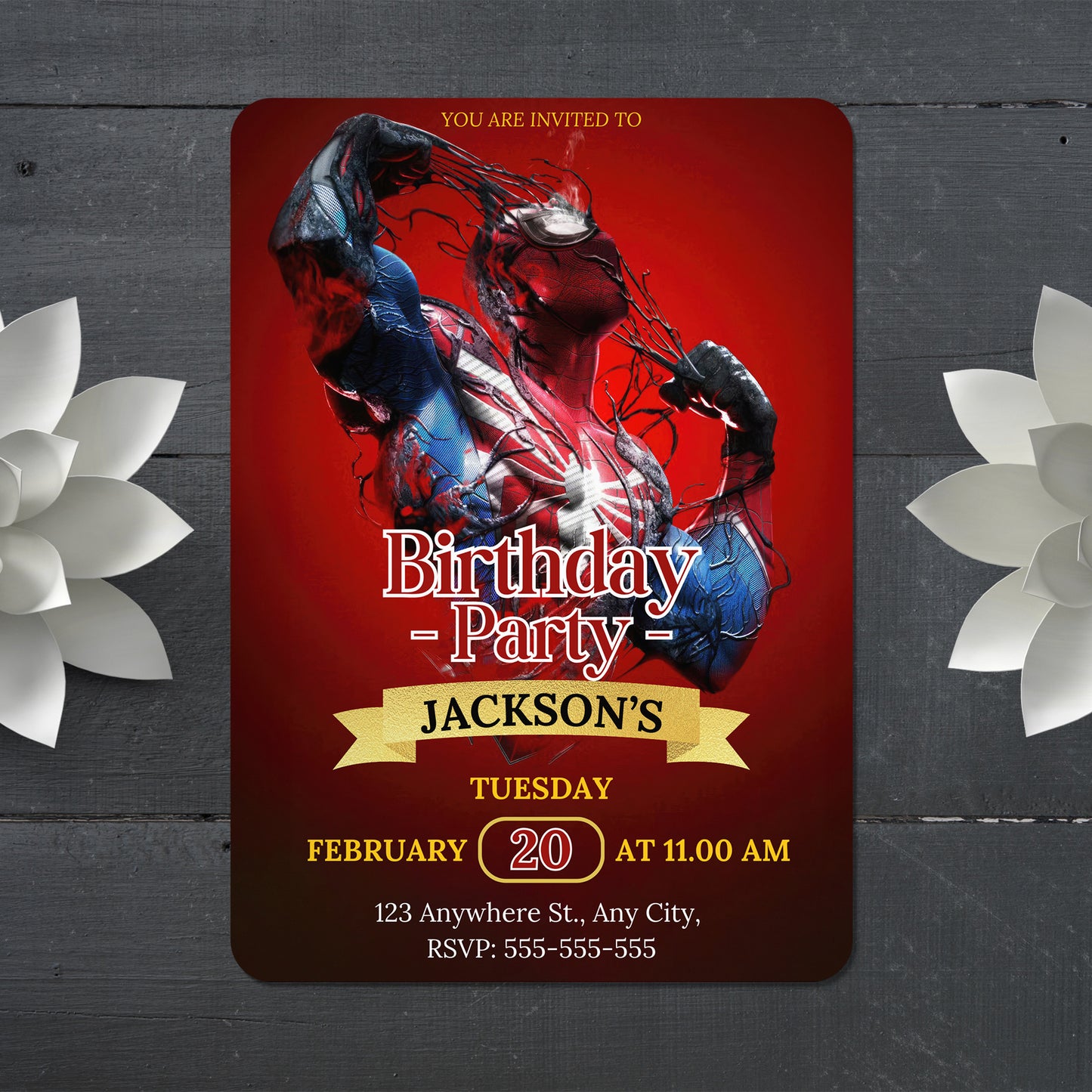 Celebrate the Birthday and invite the friends and family with Spiderman Birthday Invitation. Make a lasting impression and create a memorable experience for your guests with this unique and stunning invitation.