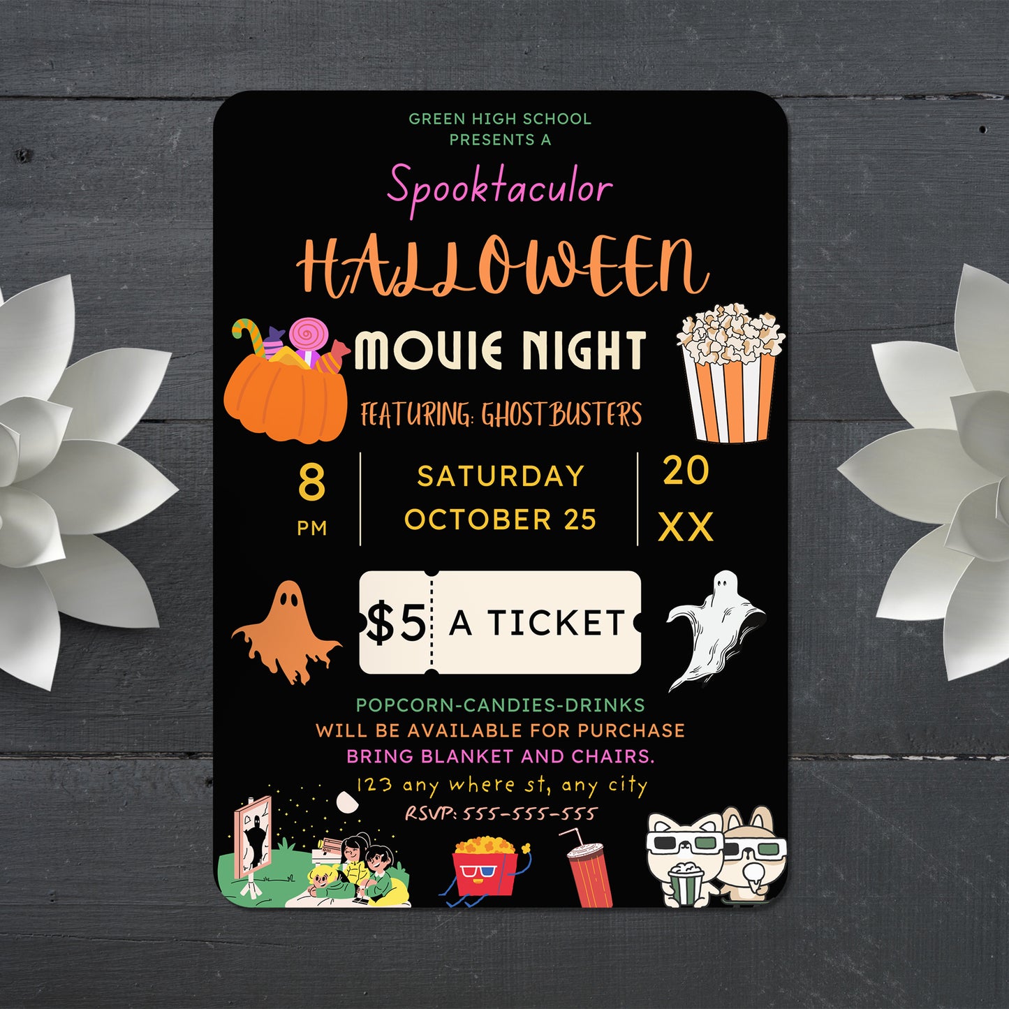 Spooktacular Halloween Movie Night Fundraiser Invitation Template