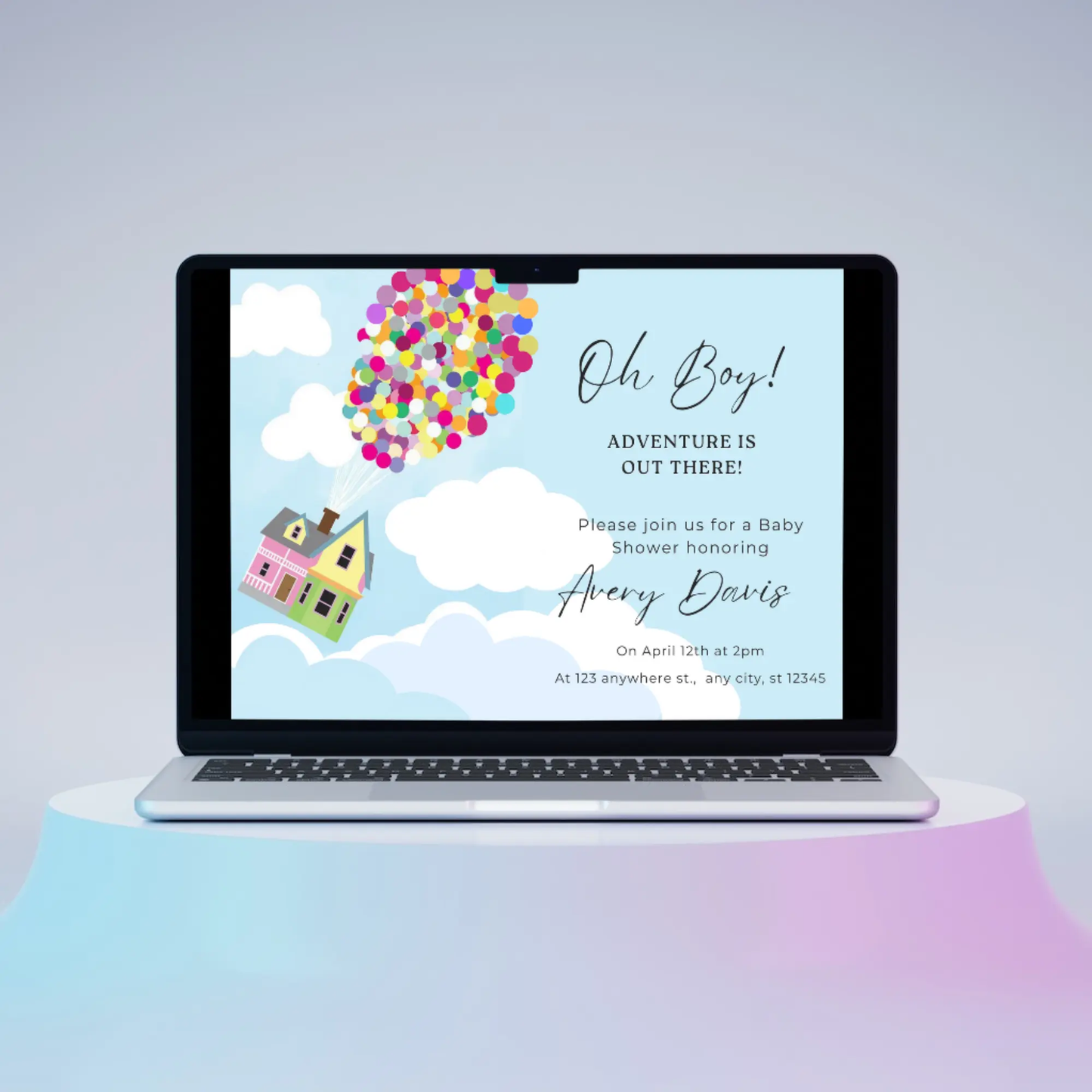 UP Baby Shower Invitation Template | Flying House and Balloons Invite