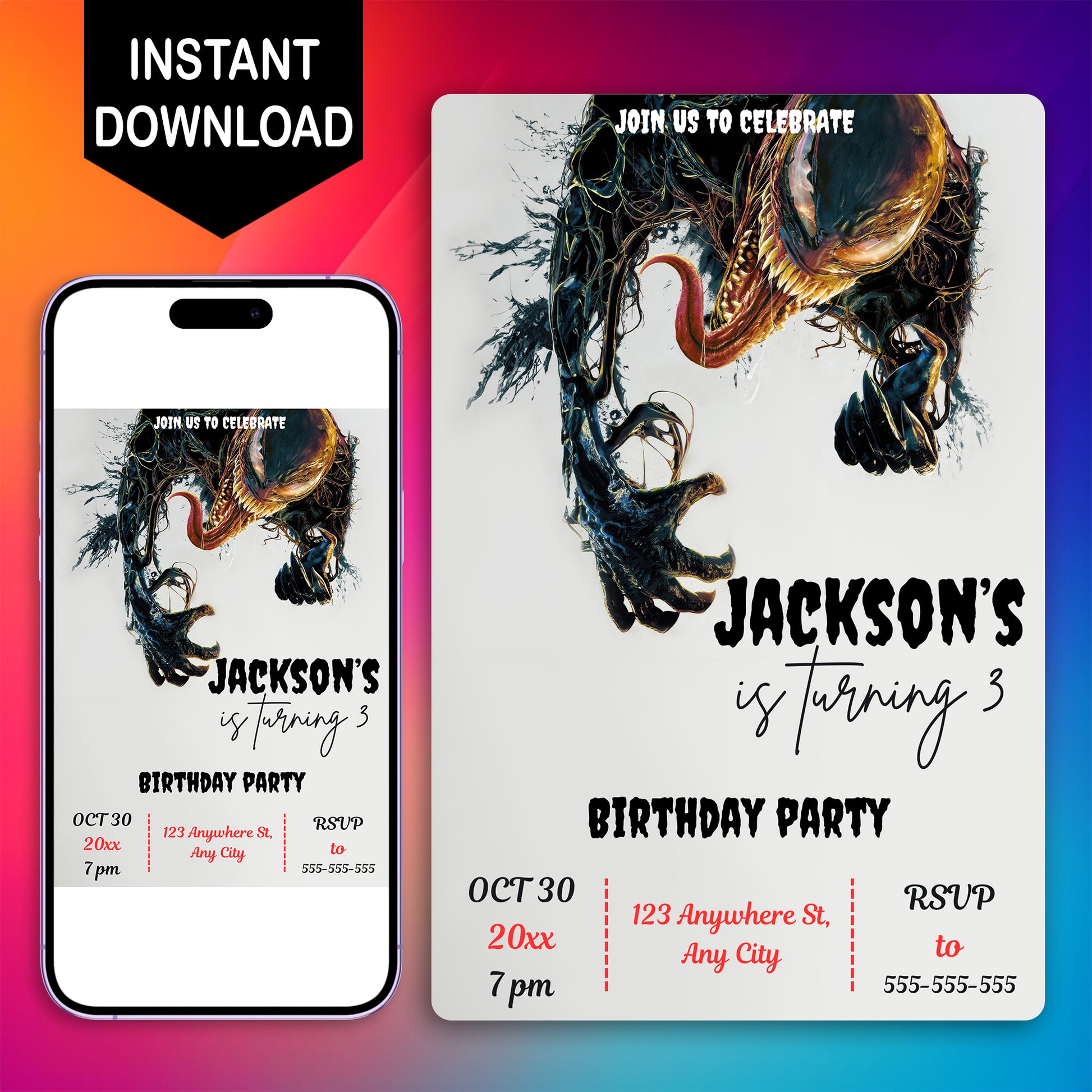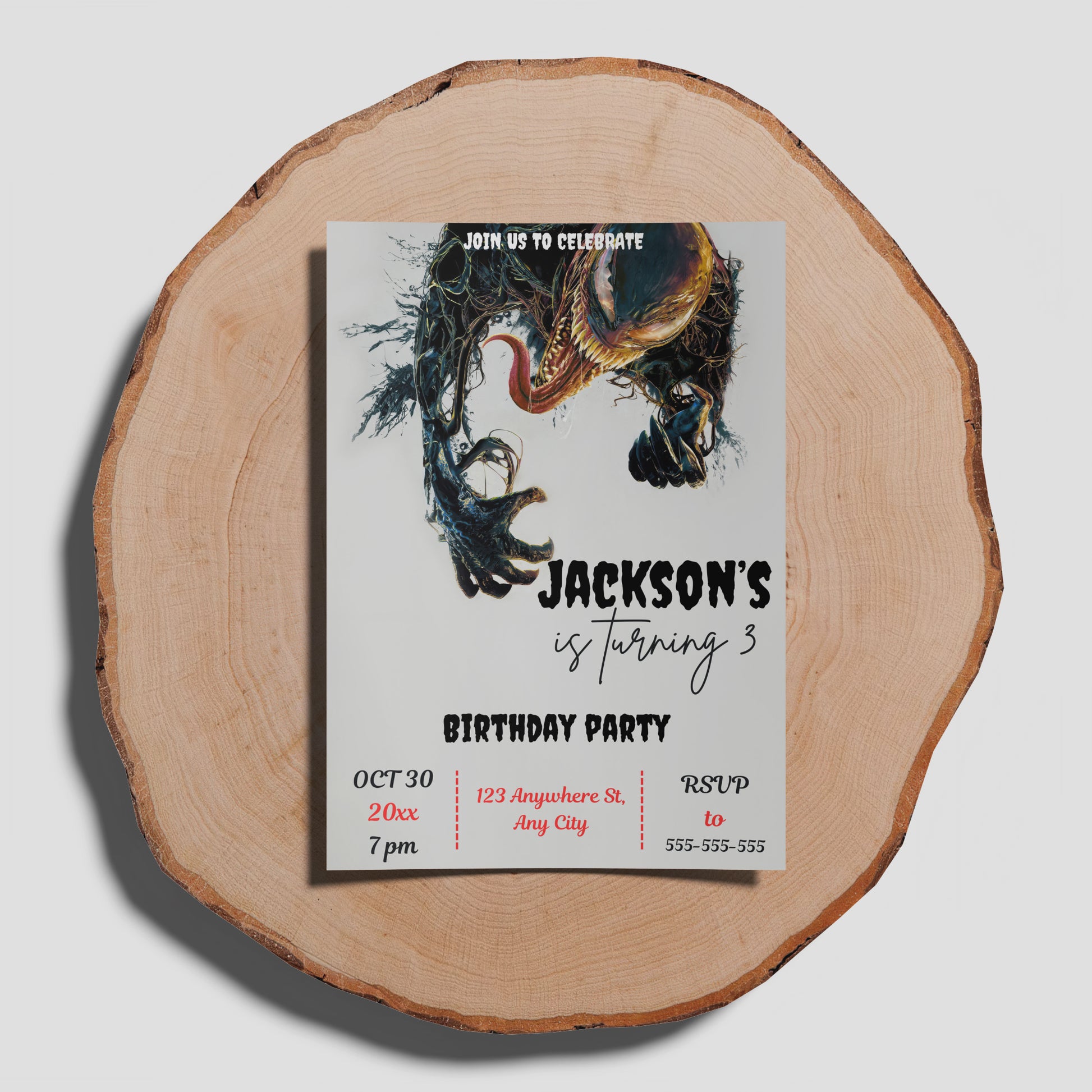 Celebrate the Birthday and invite the friends and family with Venom The Last Dance Birthday Invitation. Make a lasting impression and create a memorable experience for your guests with this unique and stunning invitation.