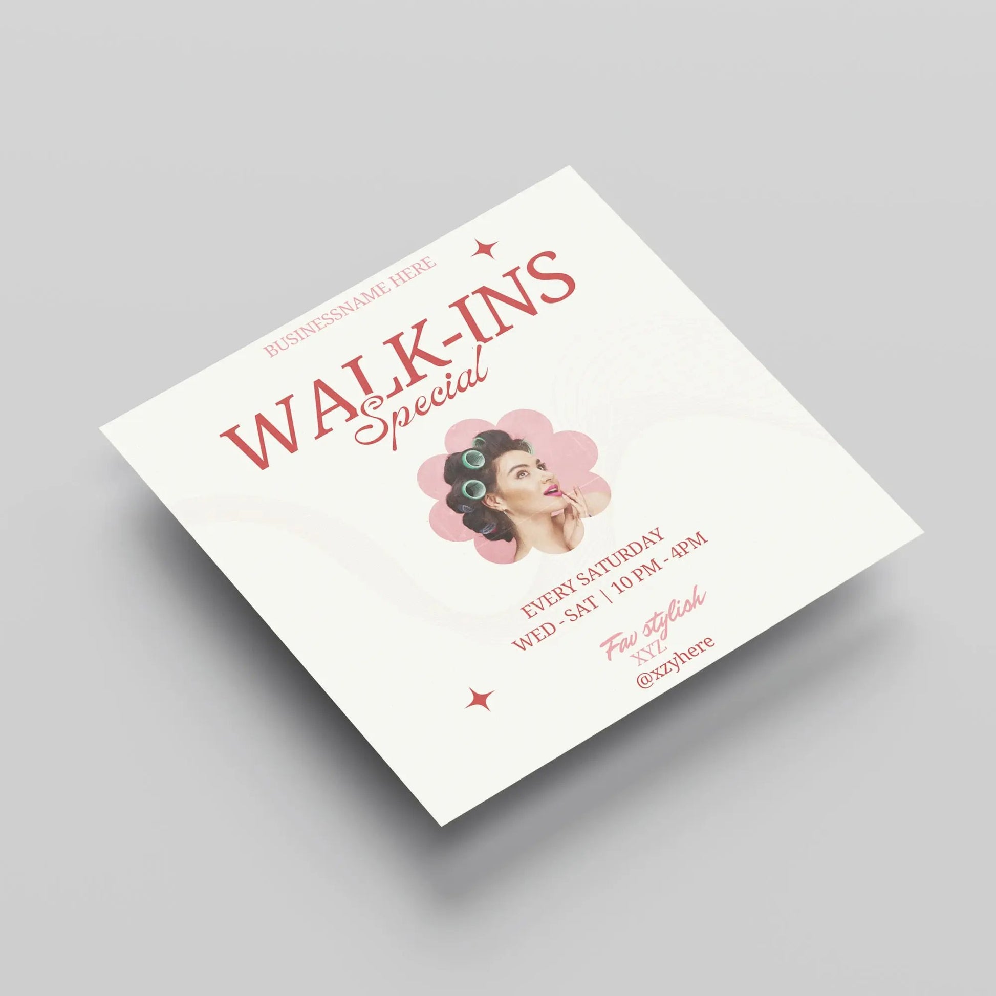 Elevate your business presence with our professionally designed "Walk-Ins Welcome" flyer template. Perfect for salons, spas, clinics, retail stores, or any business looking to attract walk-in customers.