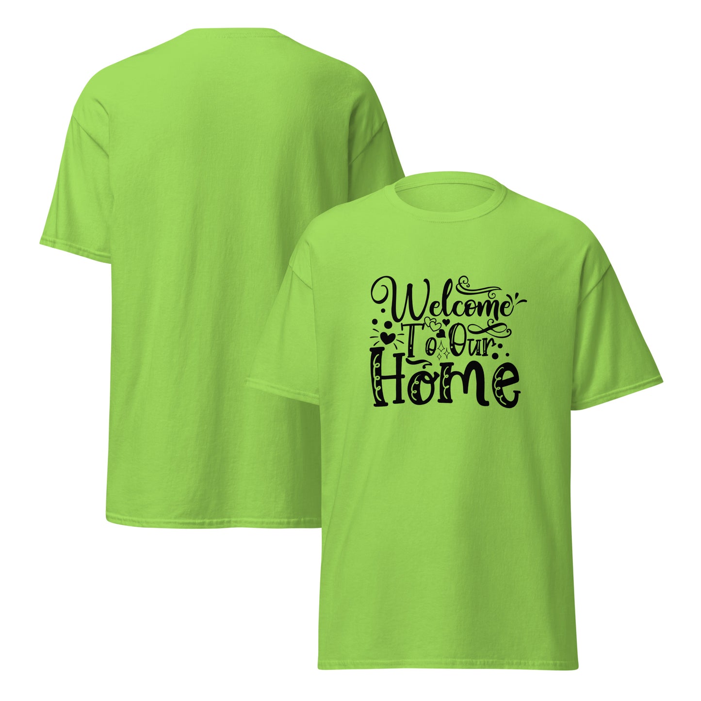 The 100% cotton Welcome to our Home unisex classic tee will help you land a more structured look. It sits nicely, maintains sharp lines around the edges, and goes perfectly with layered streetwear outfits. Plus, it's extra trendy now! T-shirts for Men's and Women's