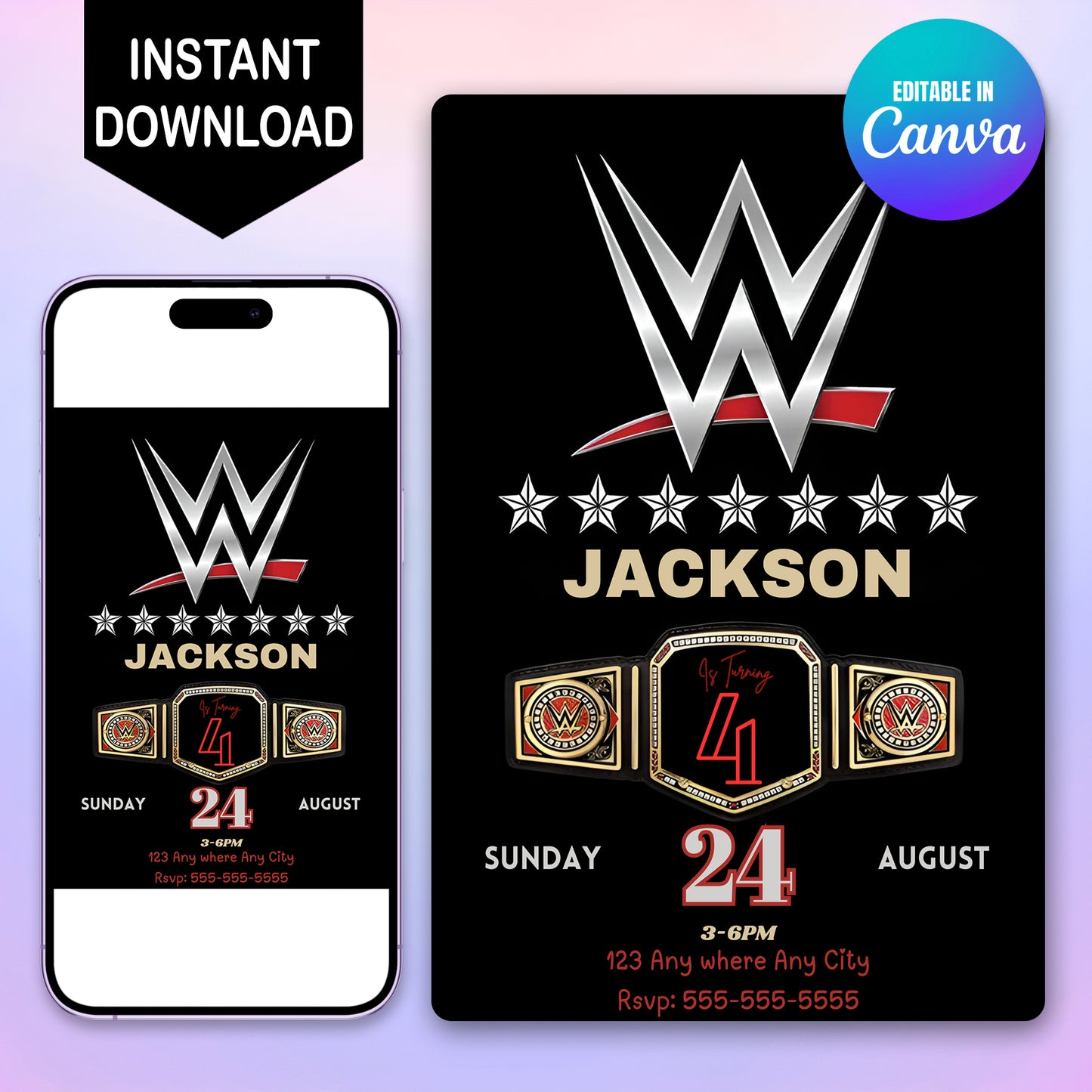 ✔ Instant Digital Download – No waiting! Get your WWE invitation instantly and send it out with ease.